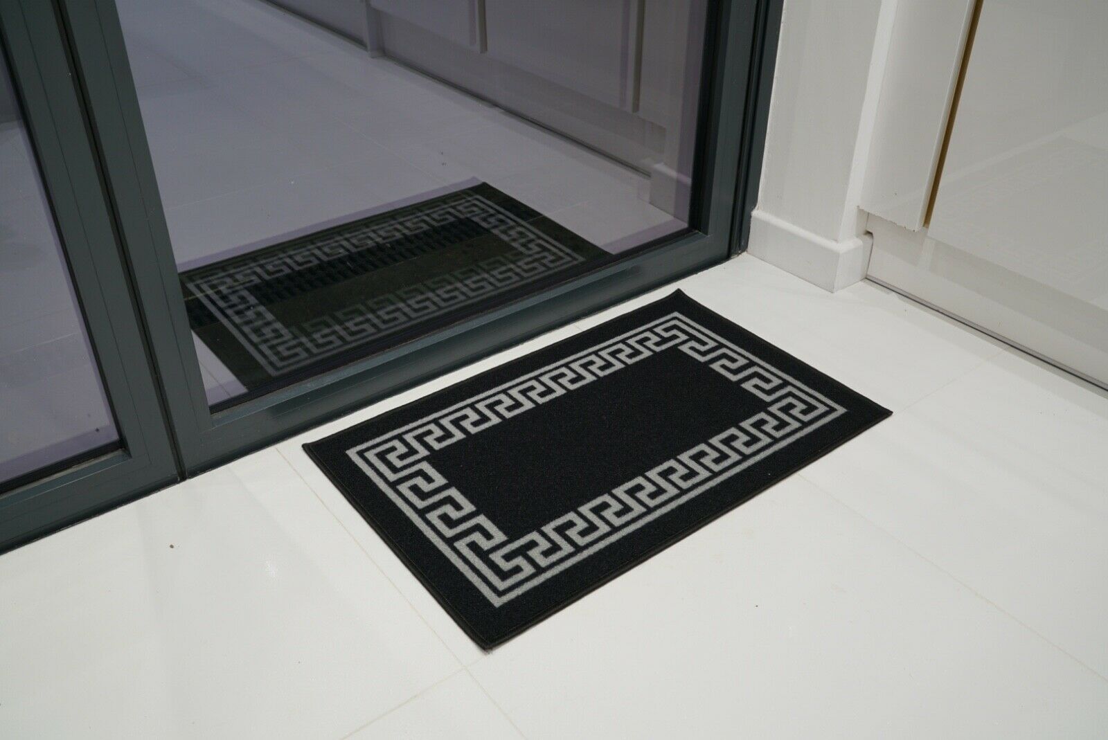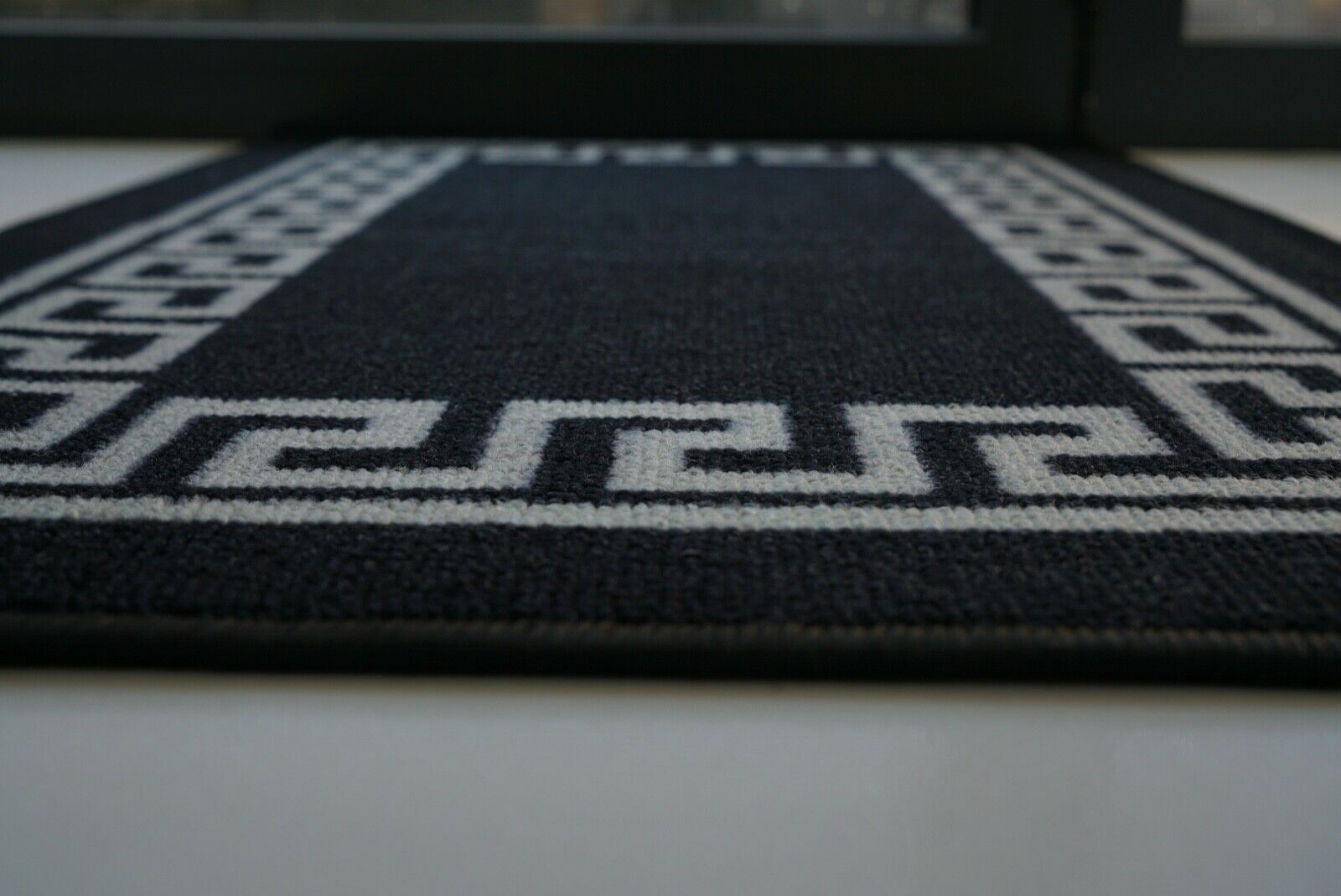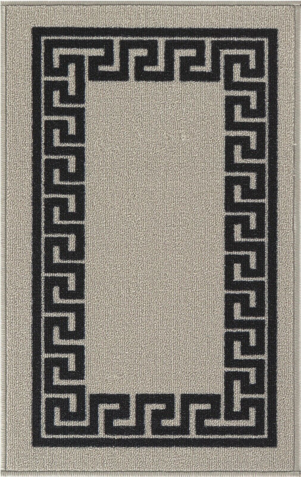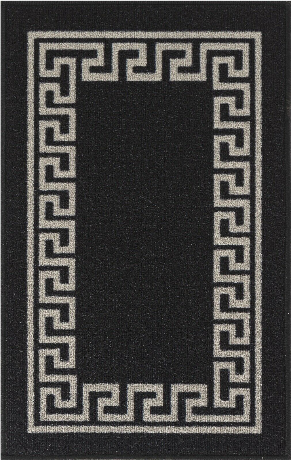 Machine Washable Non Slip Greek Key Kitchen & Hall Runners Rugs Mats Black Grey