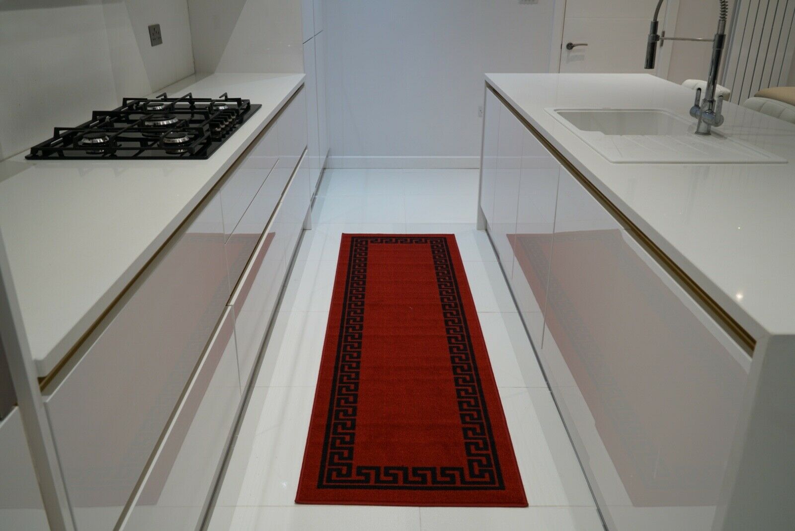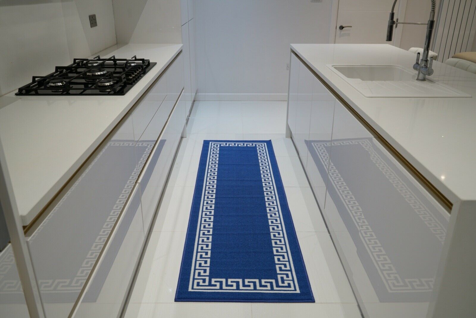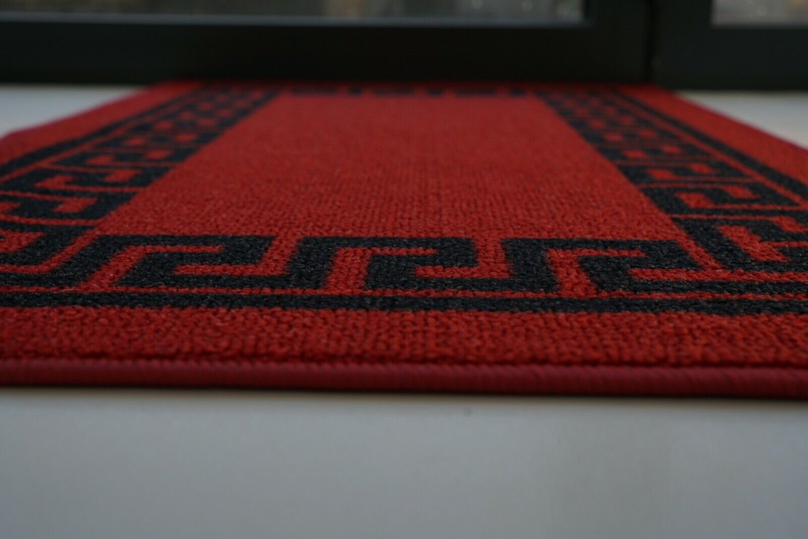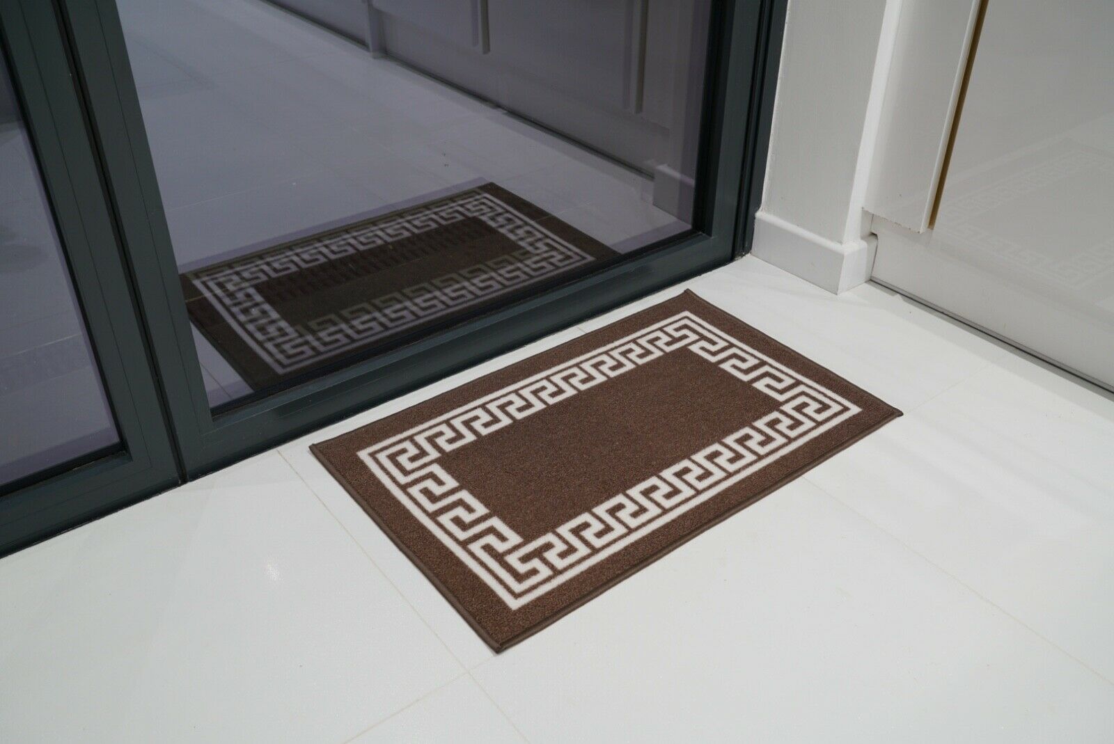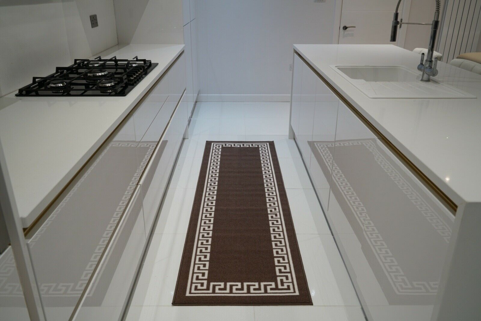 Machine Washable Non Slip Greek Key Kitchen & Hall Runners Rugs Mats Black Grey