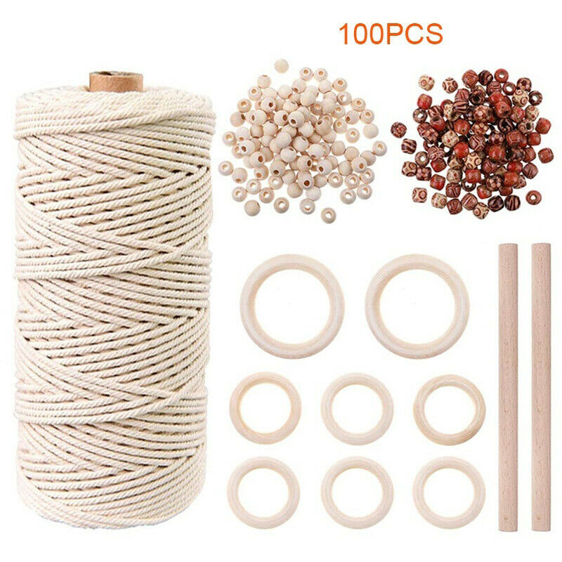 Macrame Cotton Cord Tool for Wall Hanging DIY Craft Wooden Sticks/Rings/B