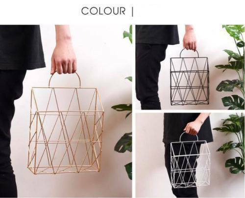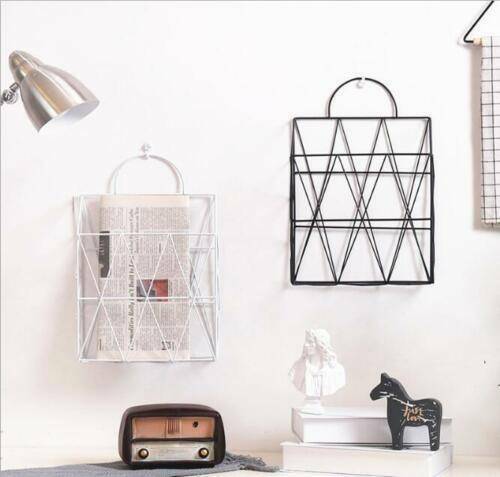 Magazine Newspaper Wire Basket Wall Mounted Post Storage Rack Organizer Office