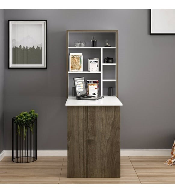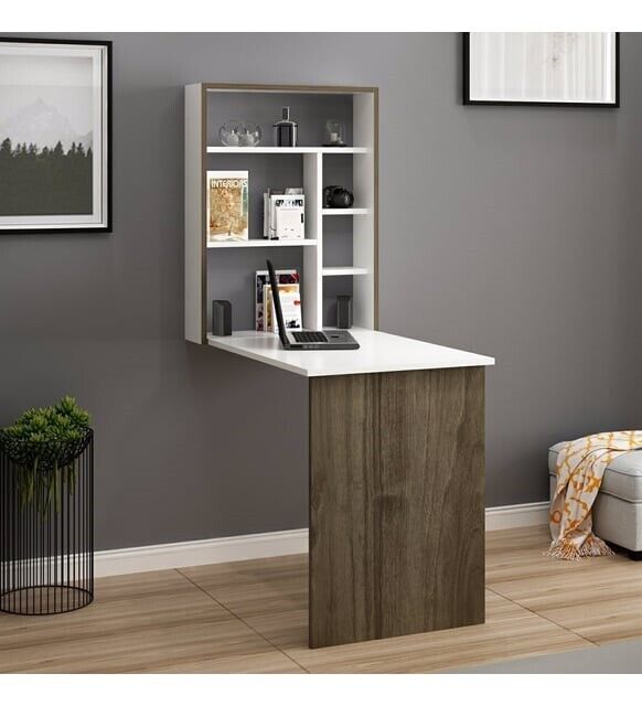 Magicbox Folding Wall Mounted Study Desk Table White/Istanbul Walnut