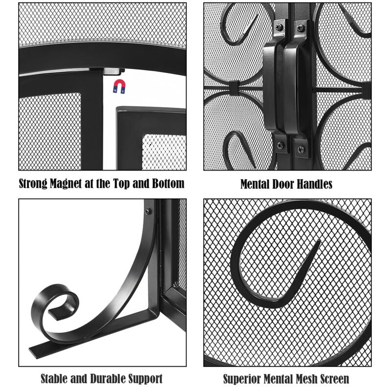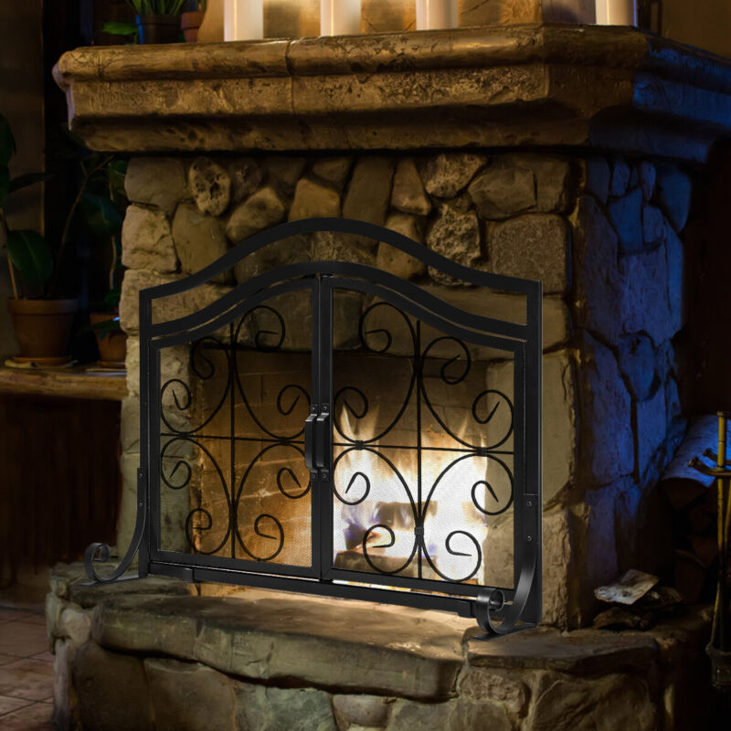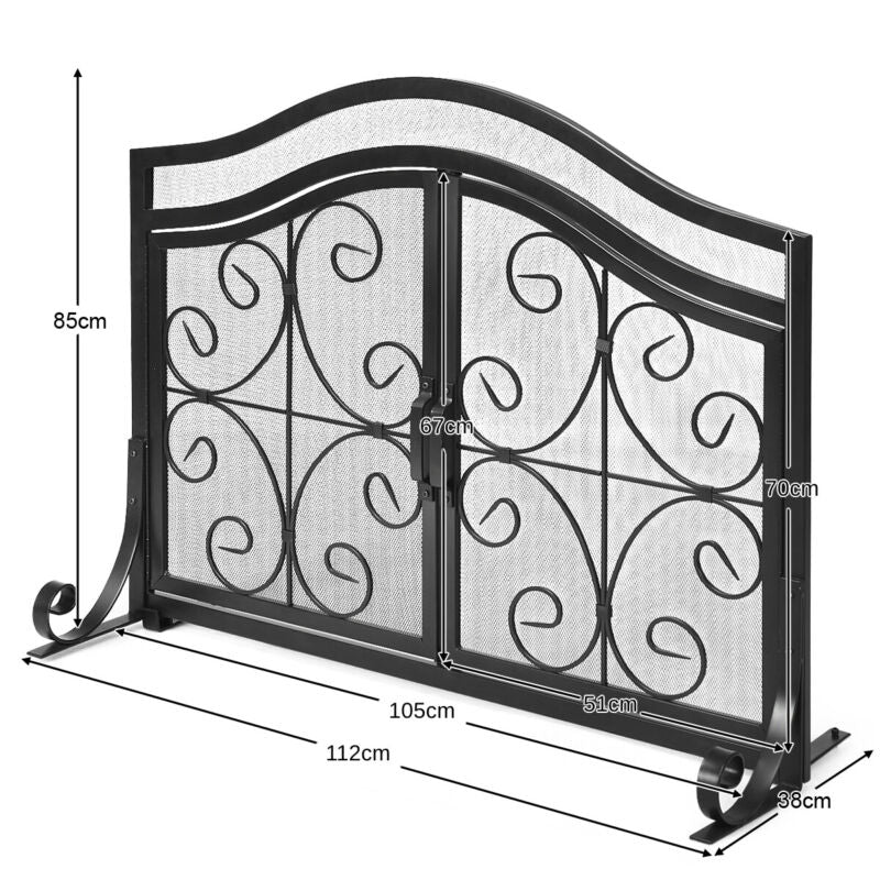 Magnetic 2 Doors Fireplace Screen Gate Large Spark Fire Guard Mesh Protector