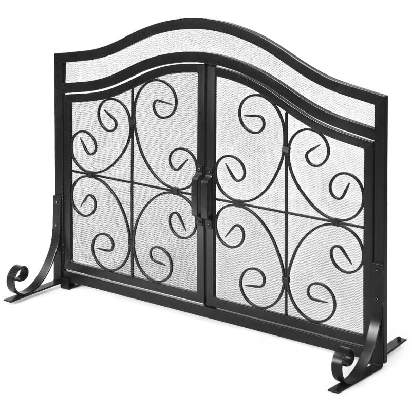 Magnetic 2 Doors Fireplace Screen Gate Large Spark Fire Guard Mesh Protector