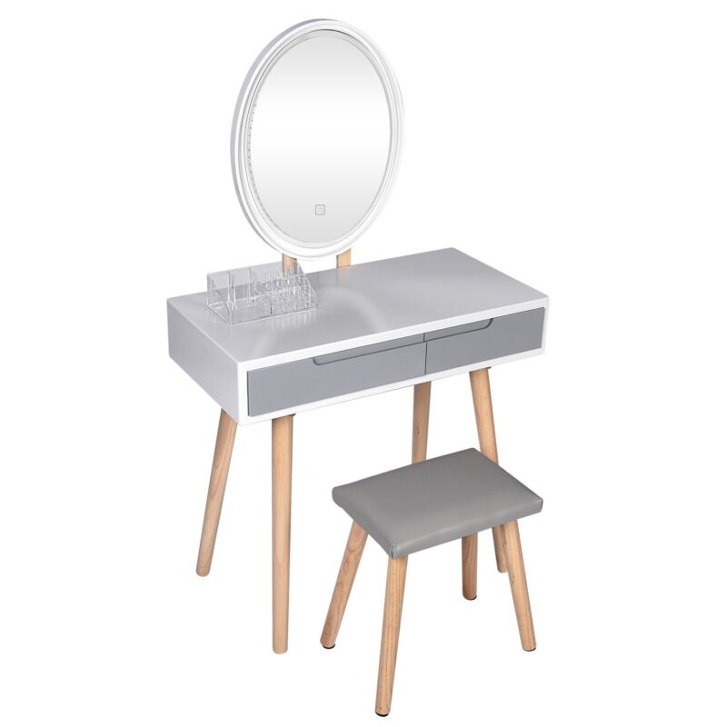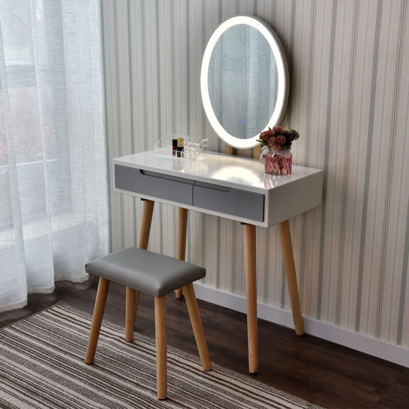 Makeup table hairdressing table cosmetic table dresser lighting mirror stool white-