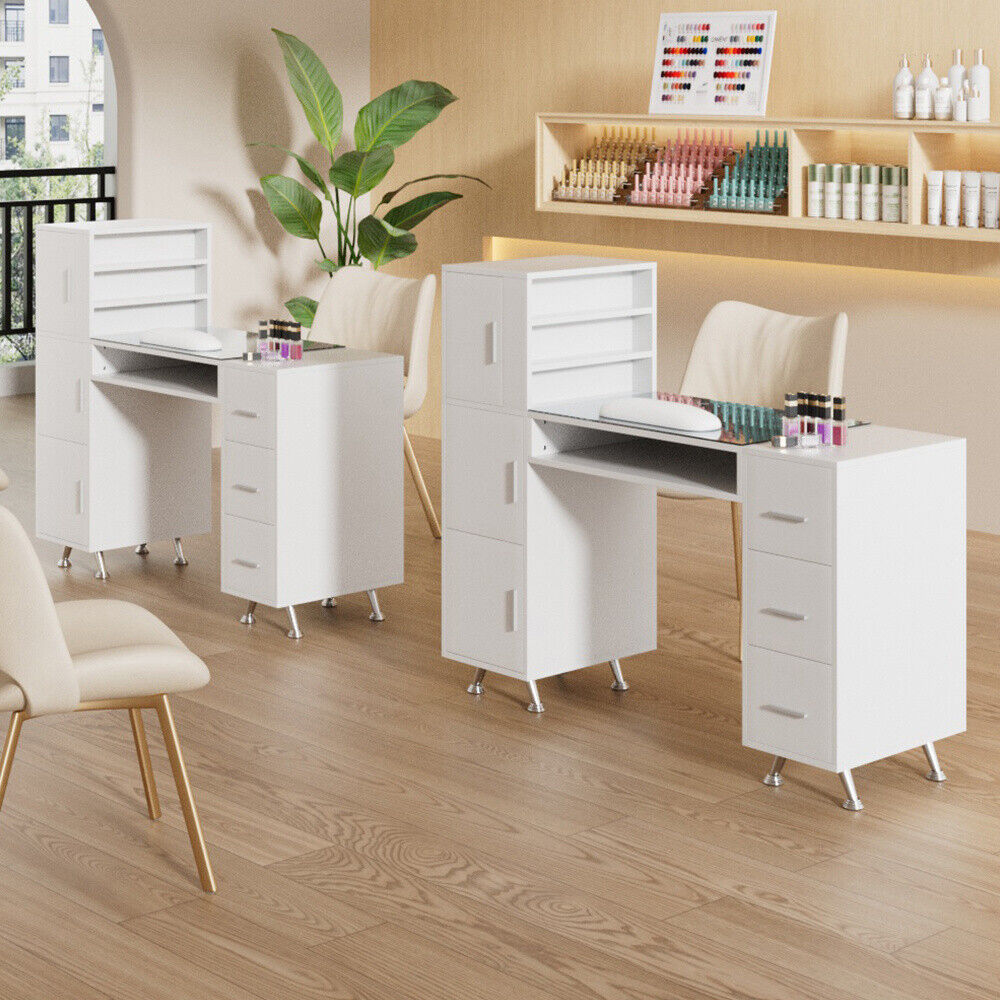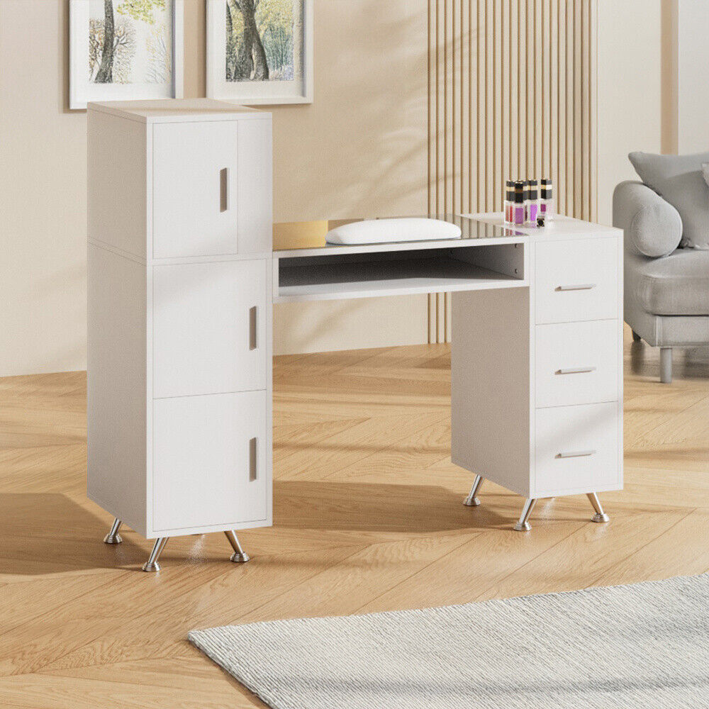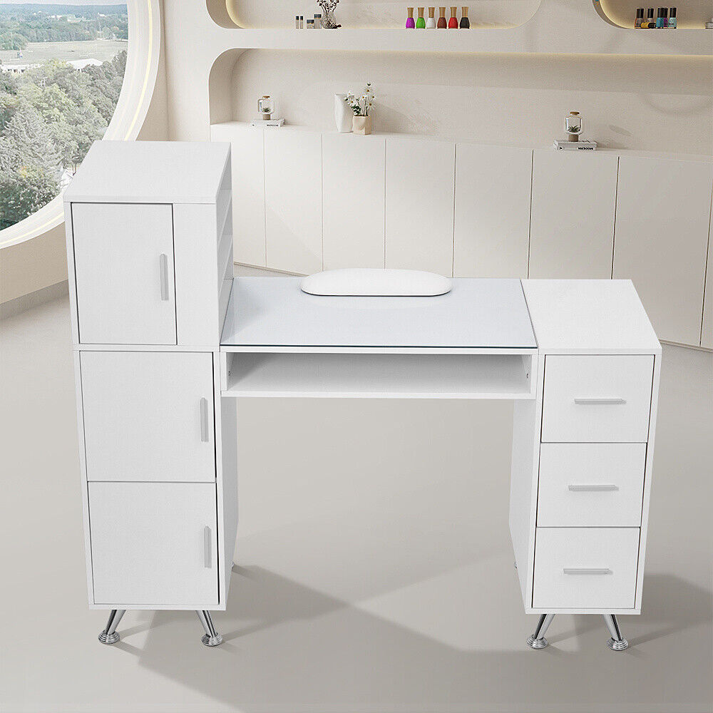 Manicure Storage Table Makeup Station Nail Desk Workstation Shelves Equipment