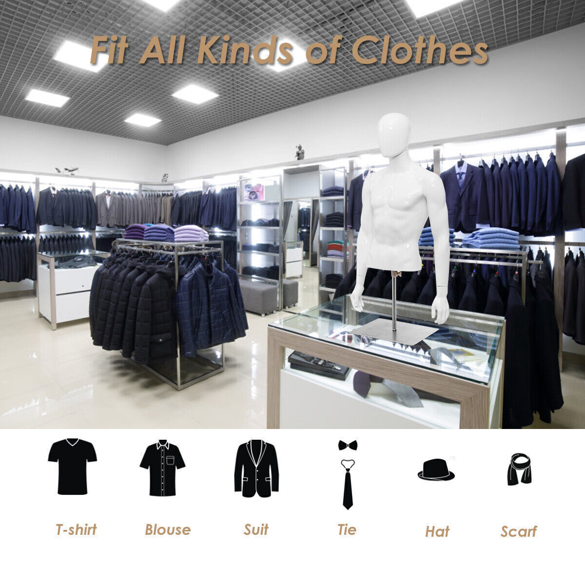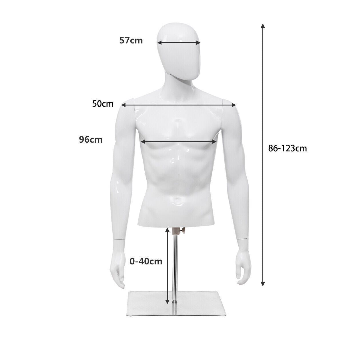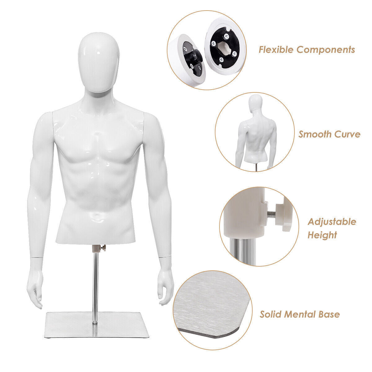 Mannequin Torso Manikin Dress Form Adjustable Male Half Body Model W/ Iron Stand