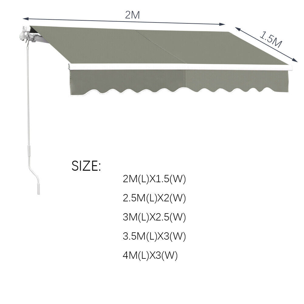 Manual Retractable Awning Canopy Window Balcony Doors Sun Shade Shelter Outdoor