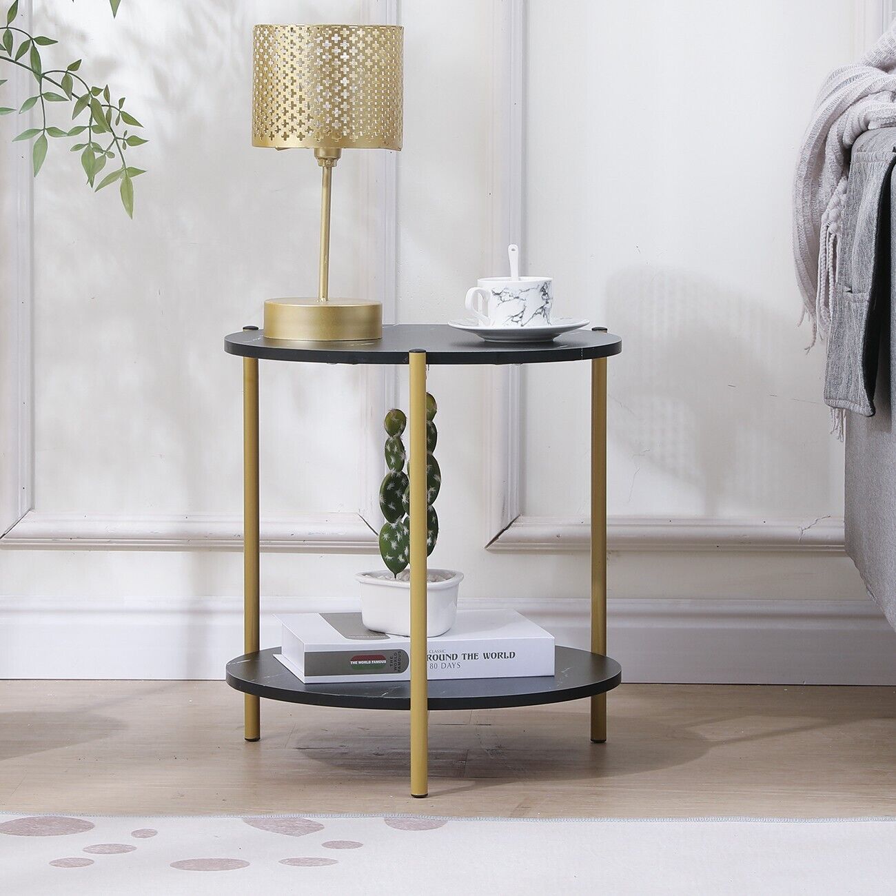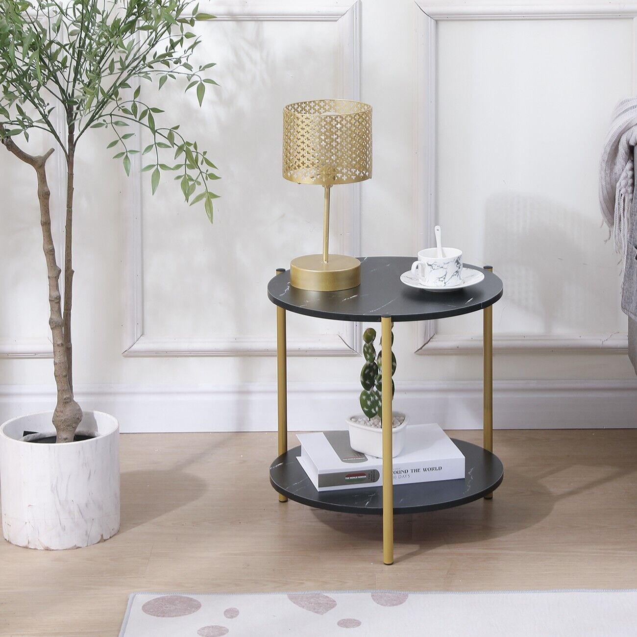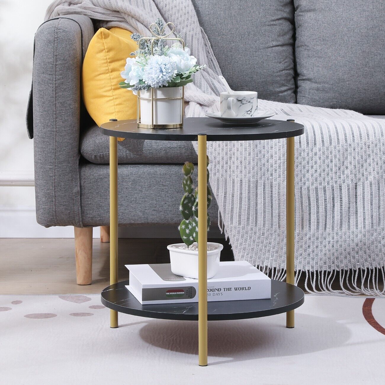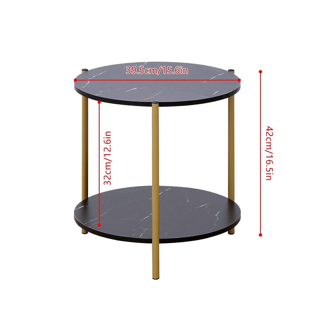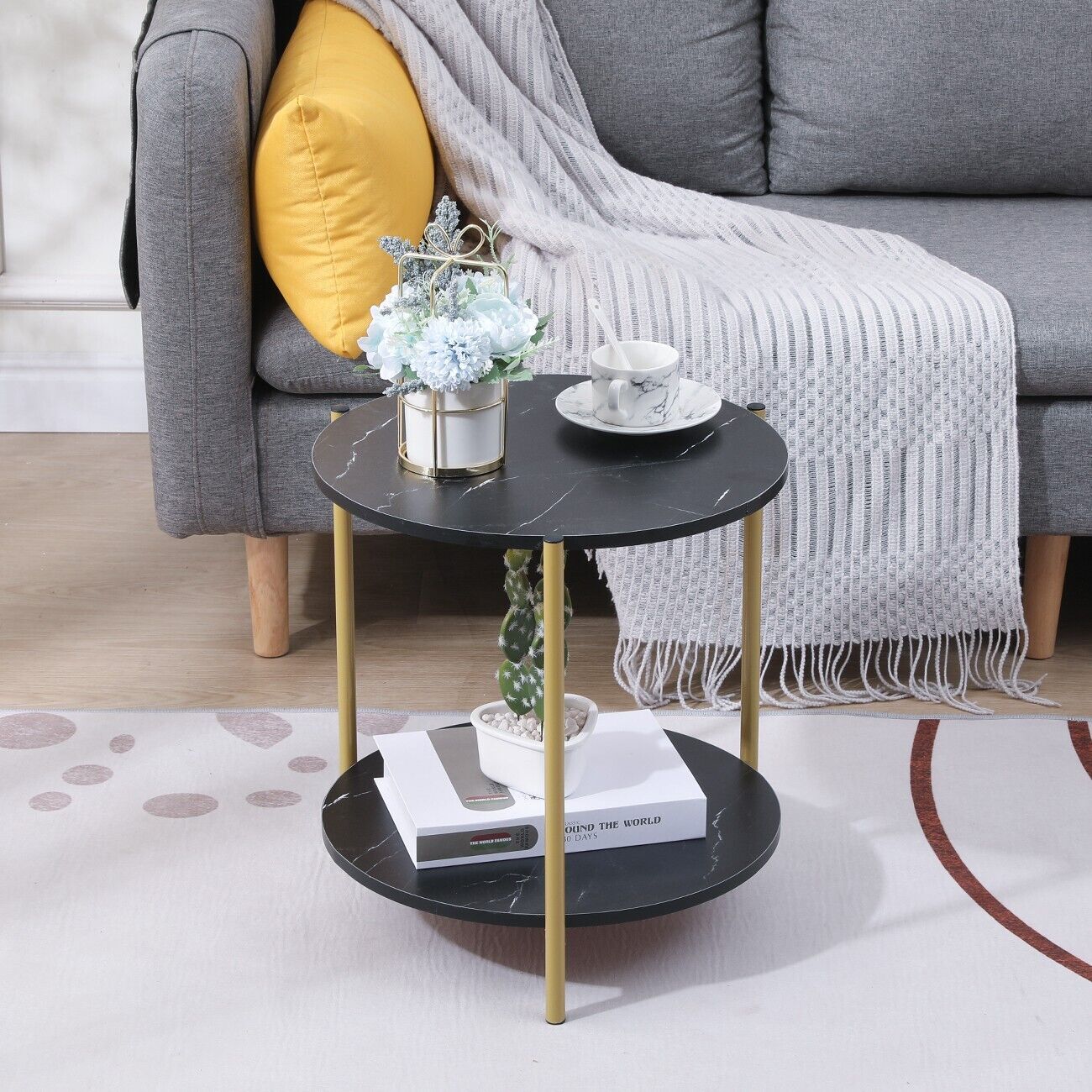 Marble Effect 2-Tier End Table Sofa Side Tables for Living Room Bedside Table