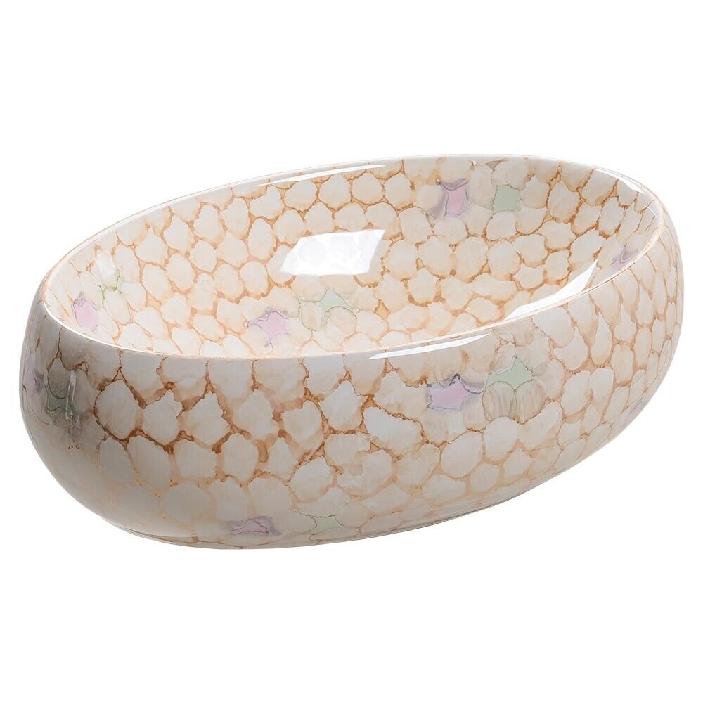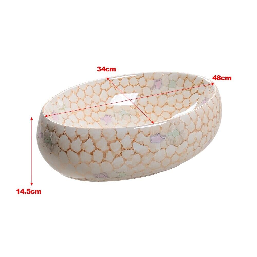 Marble Effect Bathroom Vanity Countertop Wash Basin Oval Ceramic Washing Sink