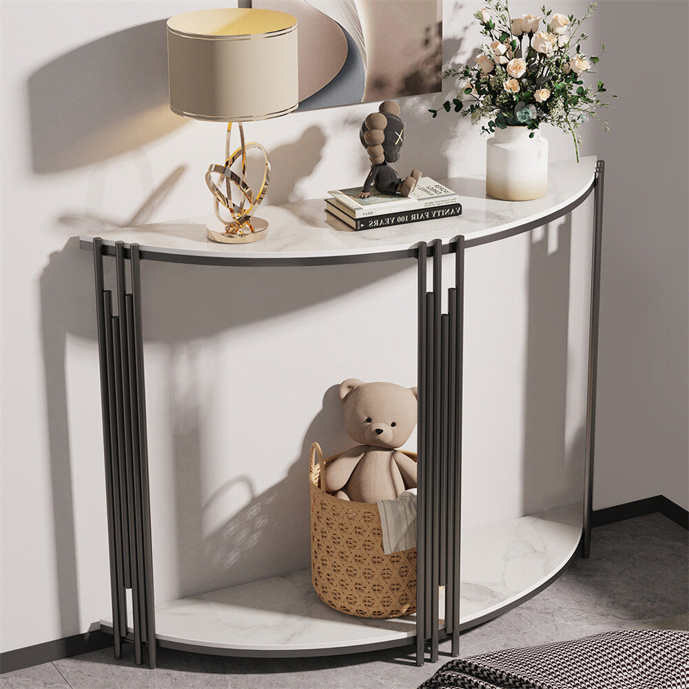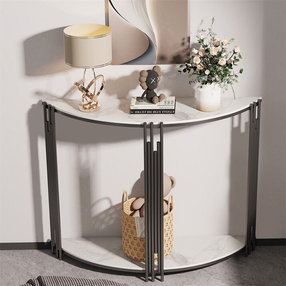 Marble Half Moon Round Hallway Entrance Console Table Furniture Unit Table White