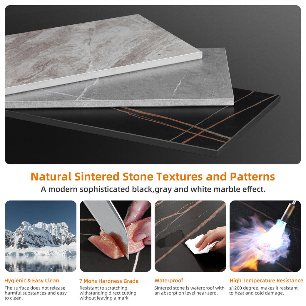 Marble Kitchen Breakfast Bar Table Counter Dining Table High Desk w/ Metal Frame