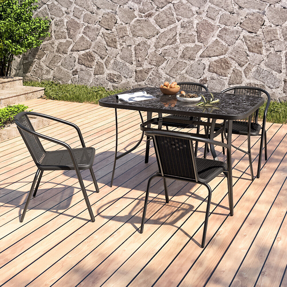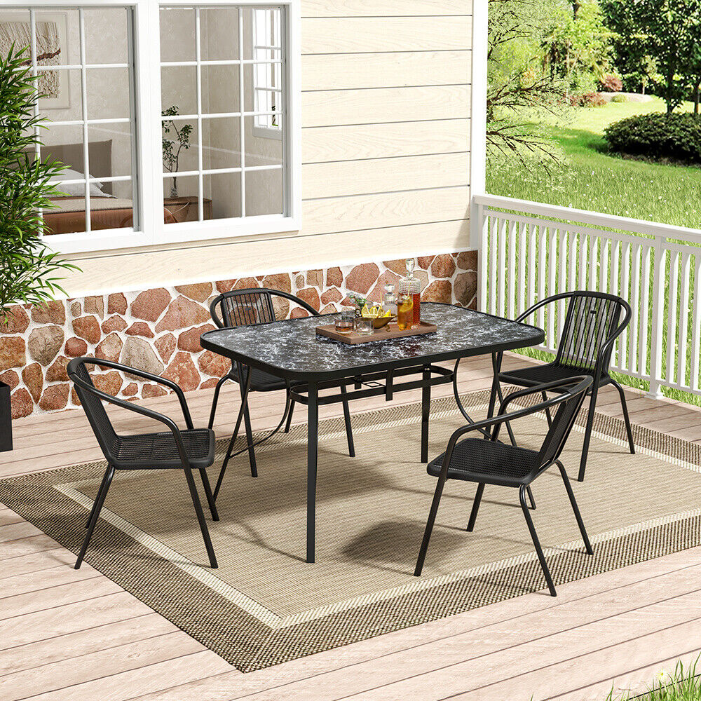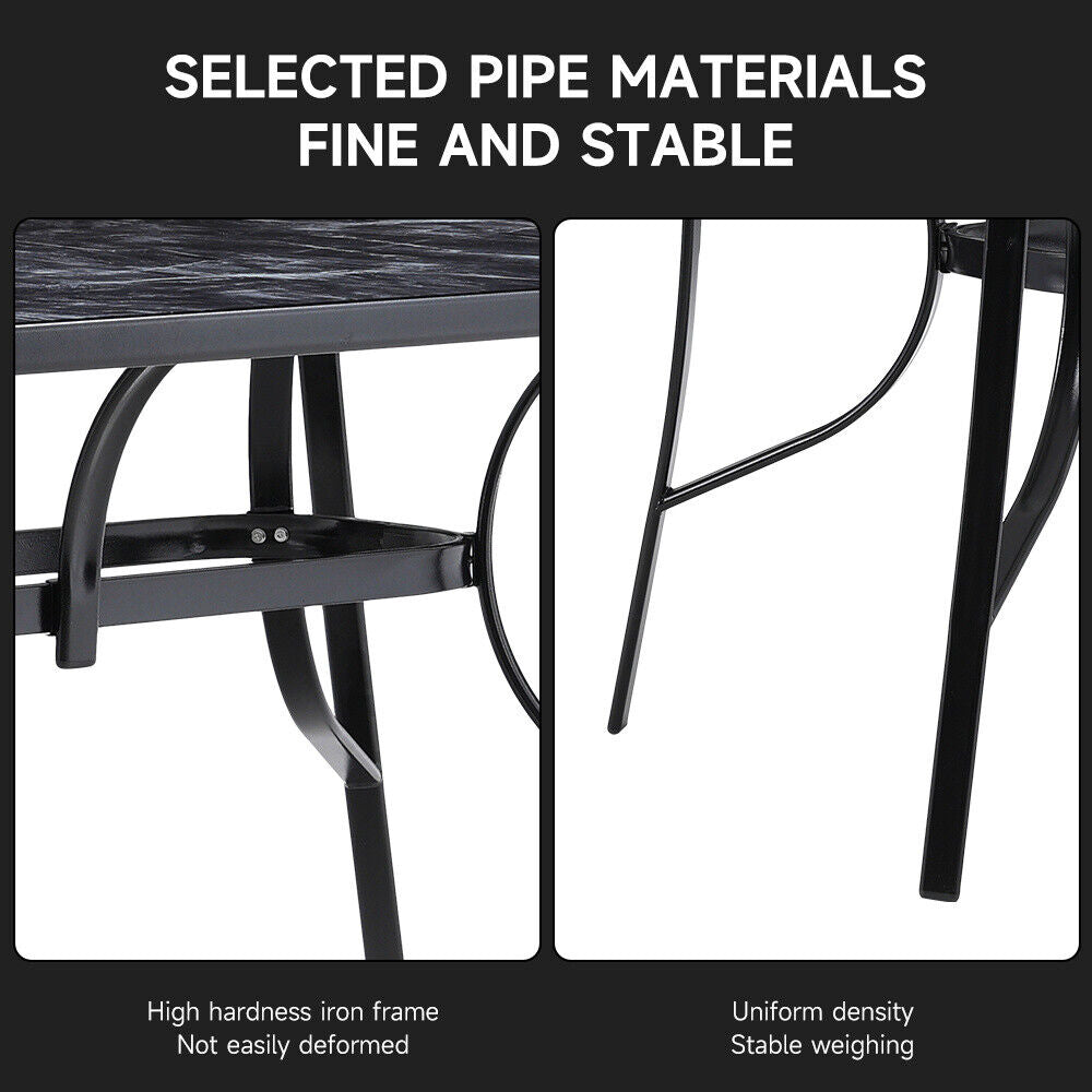 Marble Top Garden Patio Table Outdoor Furniture Metal Frame with Umbrella Hole