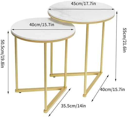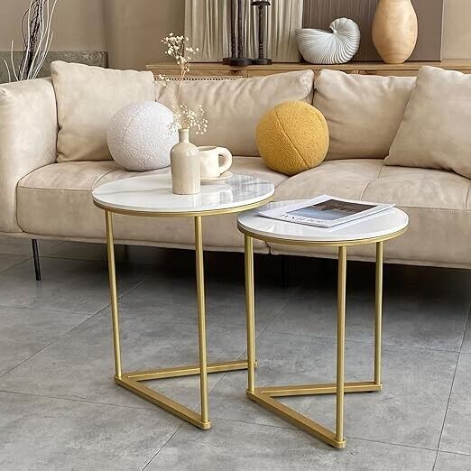 Marble Top Side Table Gold 2 Nesting Small Sofa End Tables Round Bedside Tables