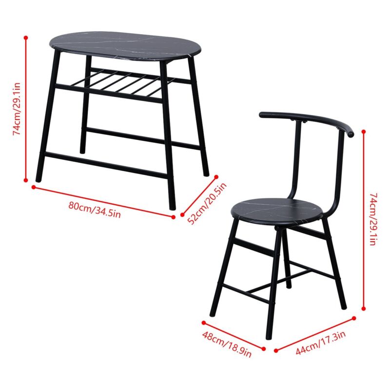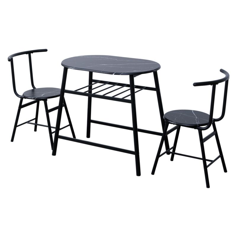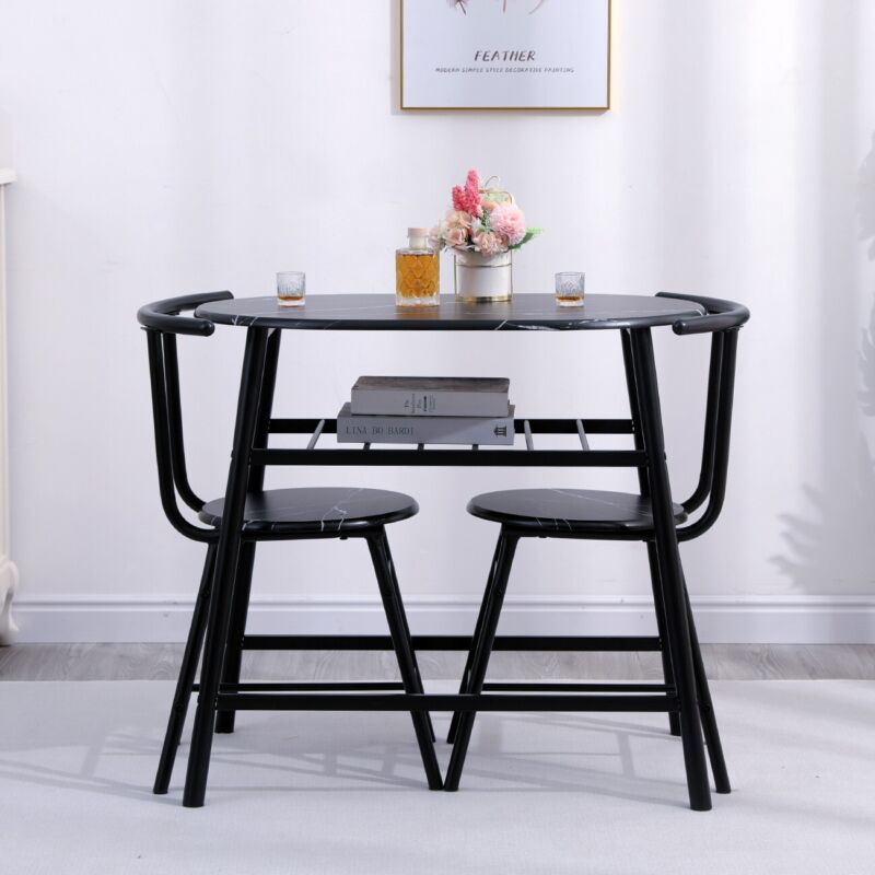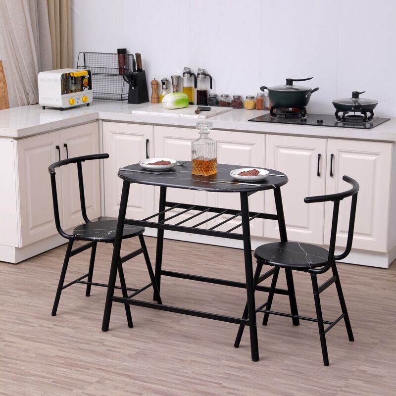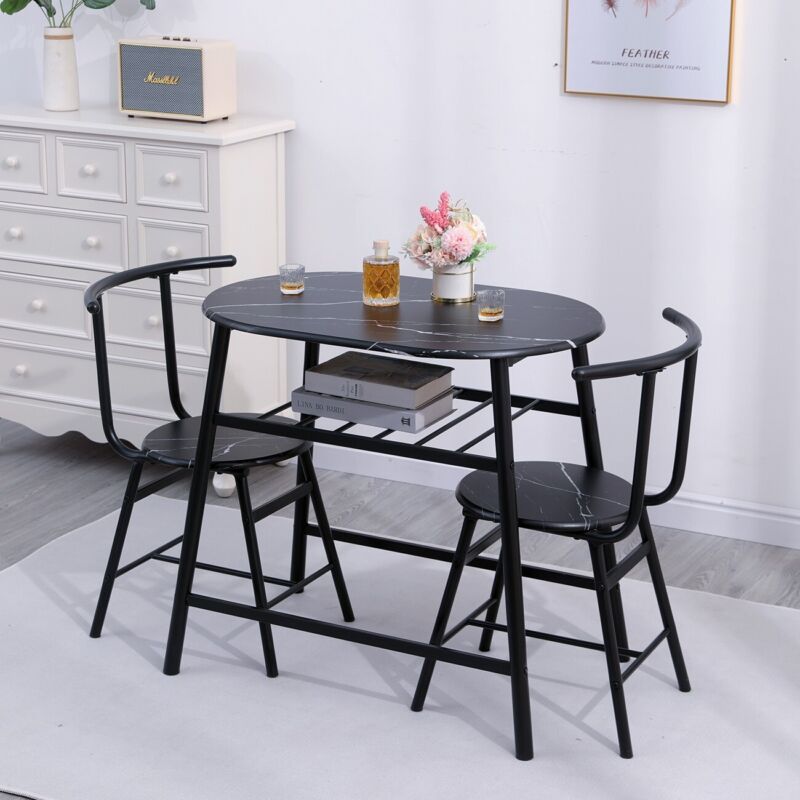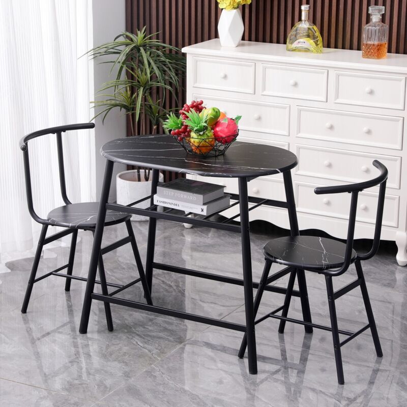 Marble Vein Table + 2 Chairs Set Bistro Set Metal Frame Coffee Breakfast Kitchen