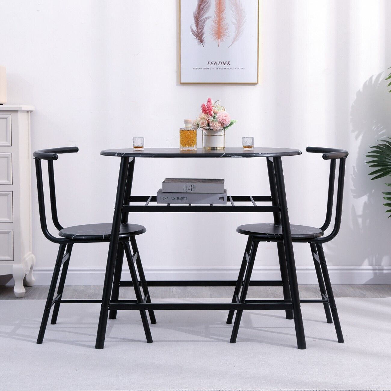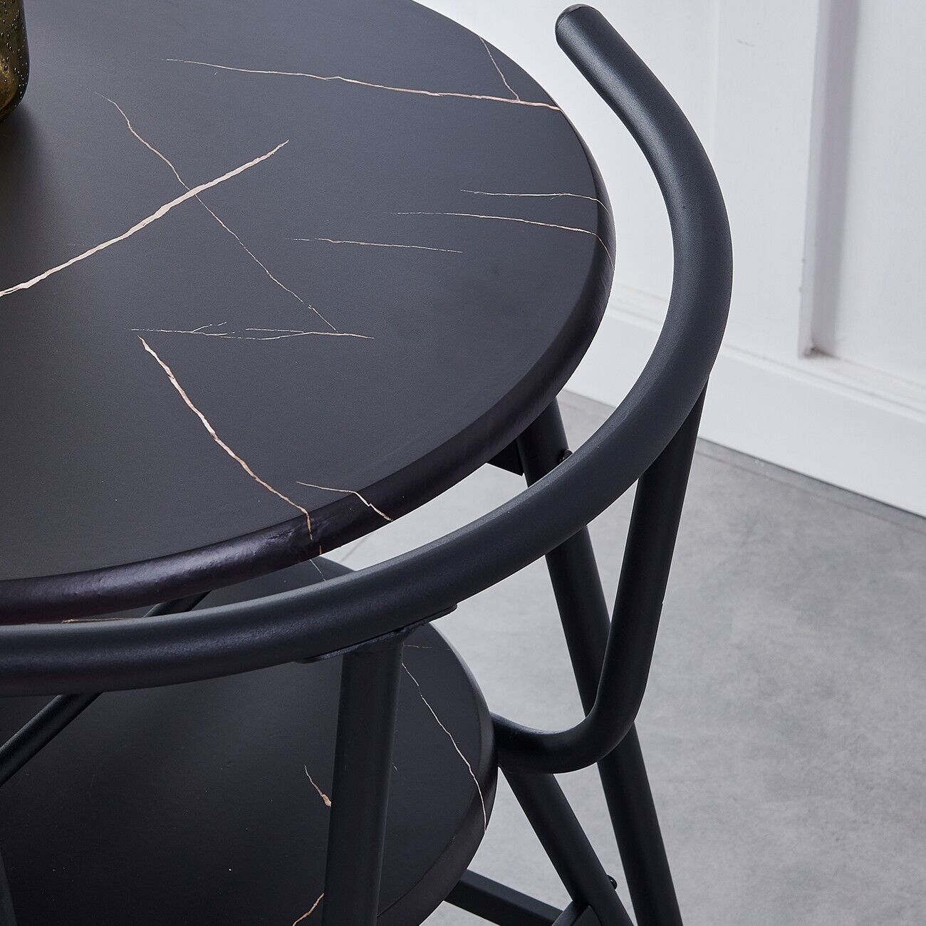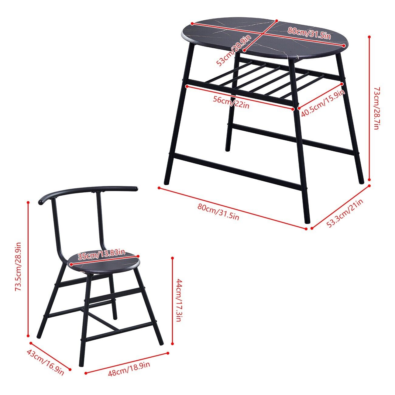 Marble Vein Table + 2 Chairs Set Bistro Set Metal Frame Coffee Breakfast Kitchen