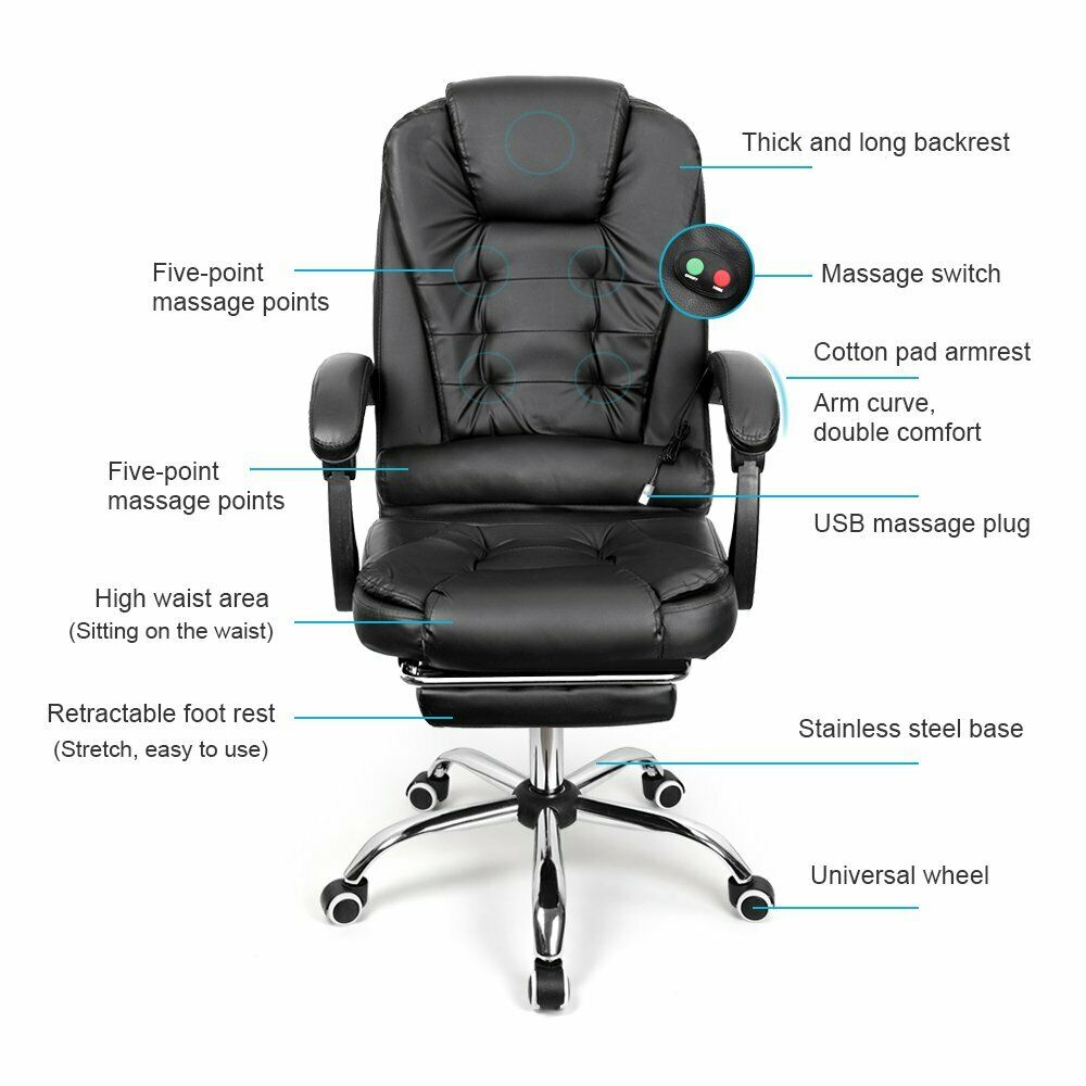 Massage Executive Office Chair Gaming Computer Desk Footrest Recliner Leather UK