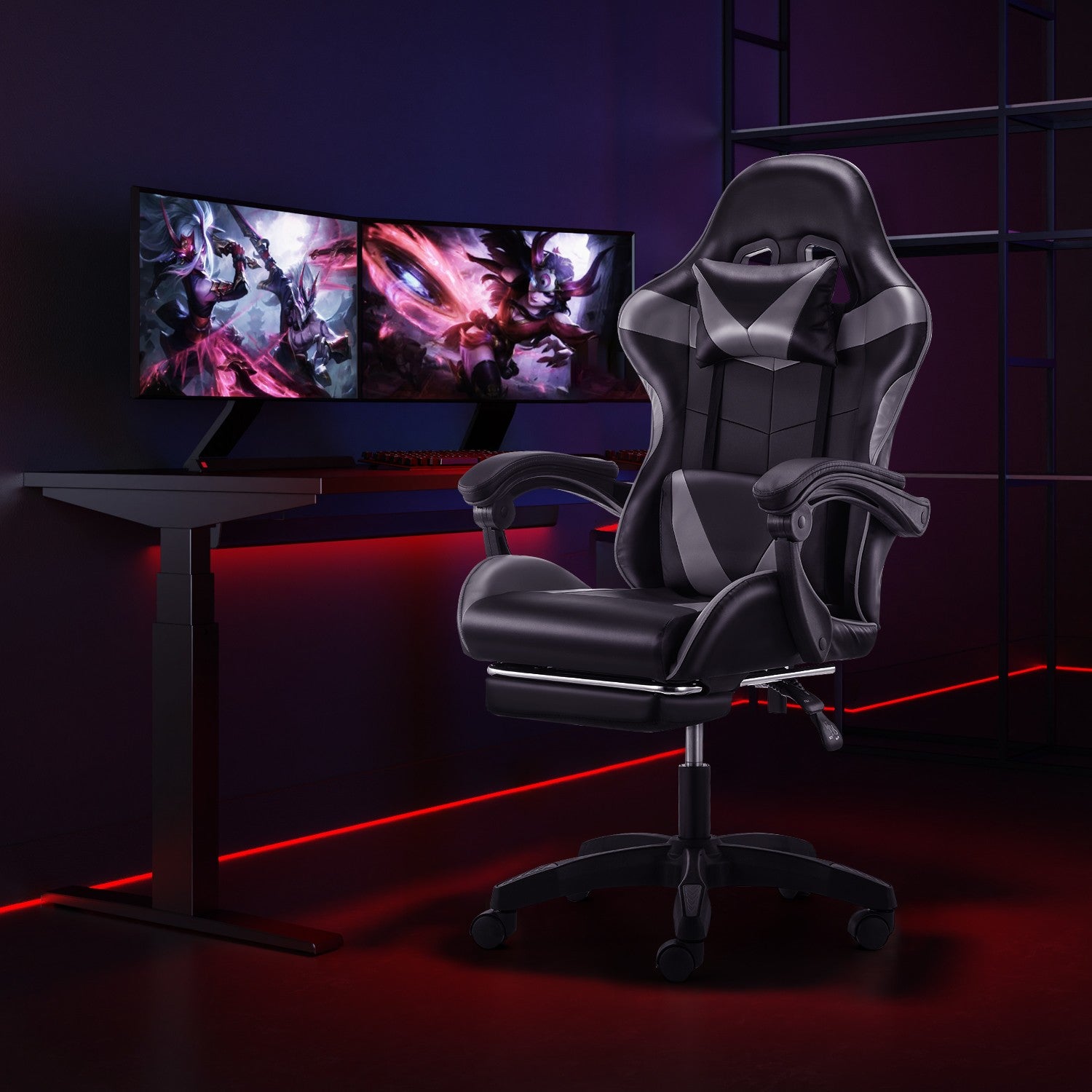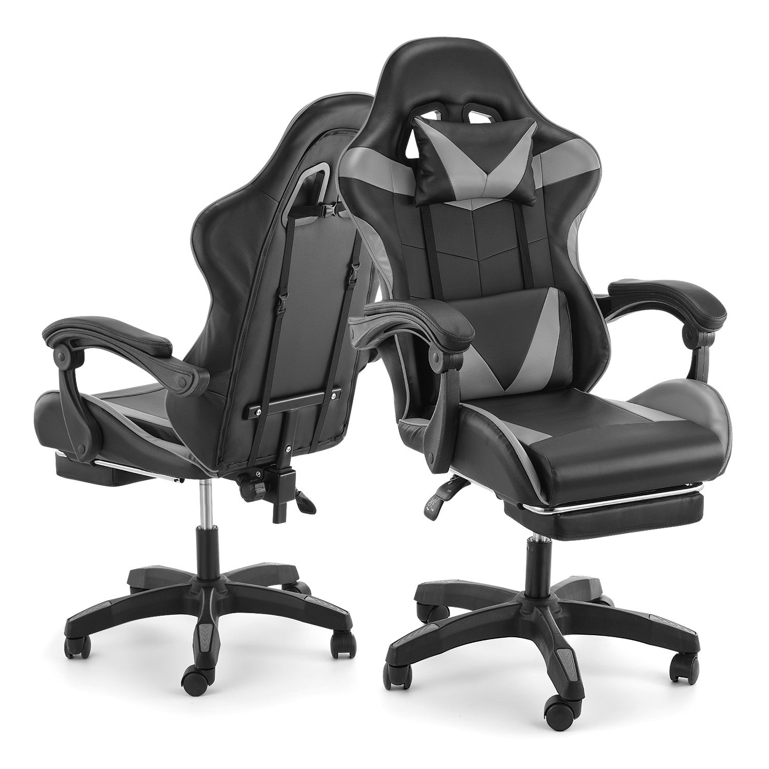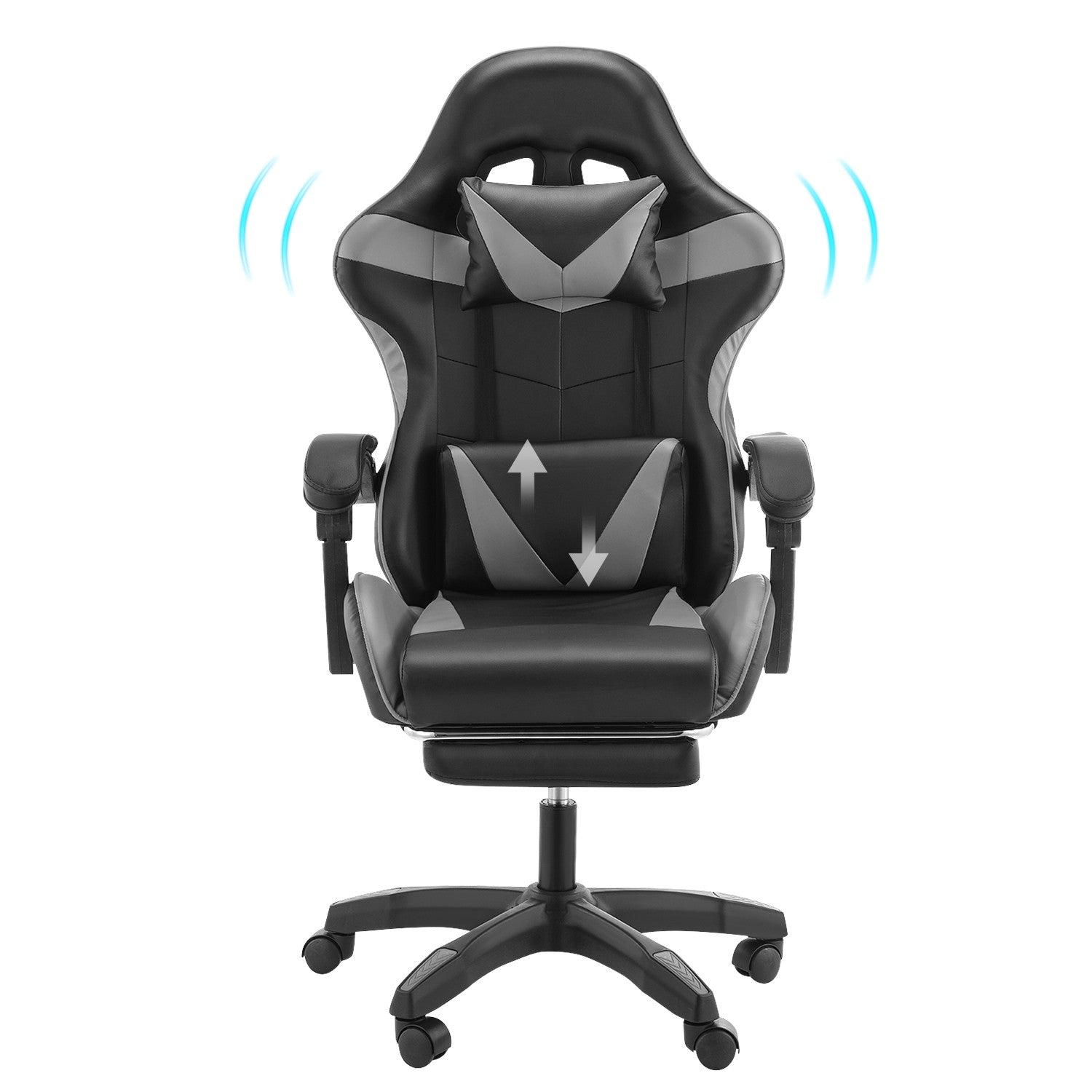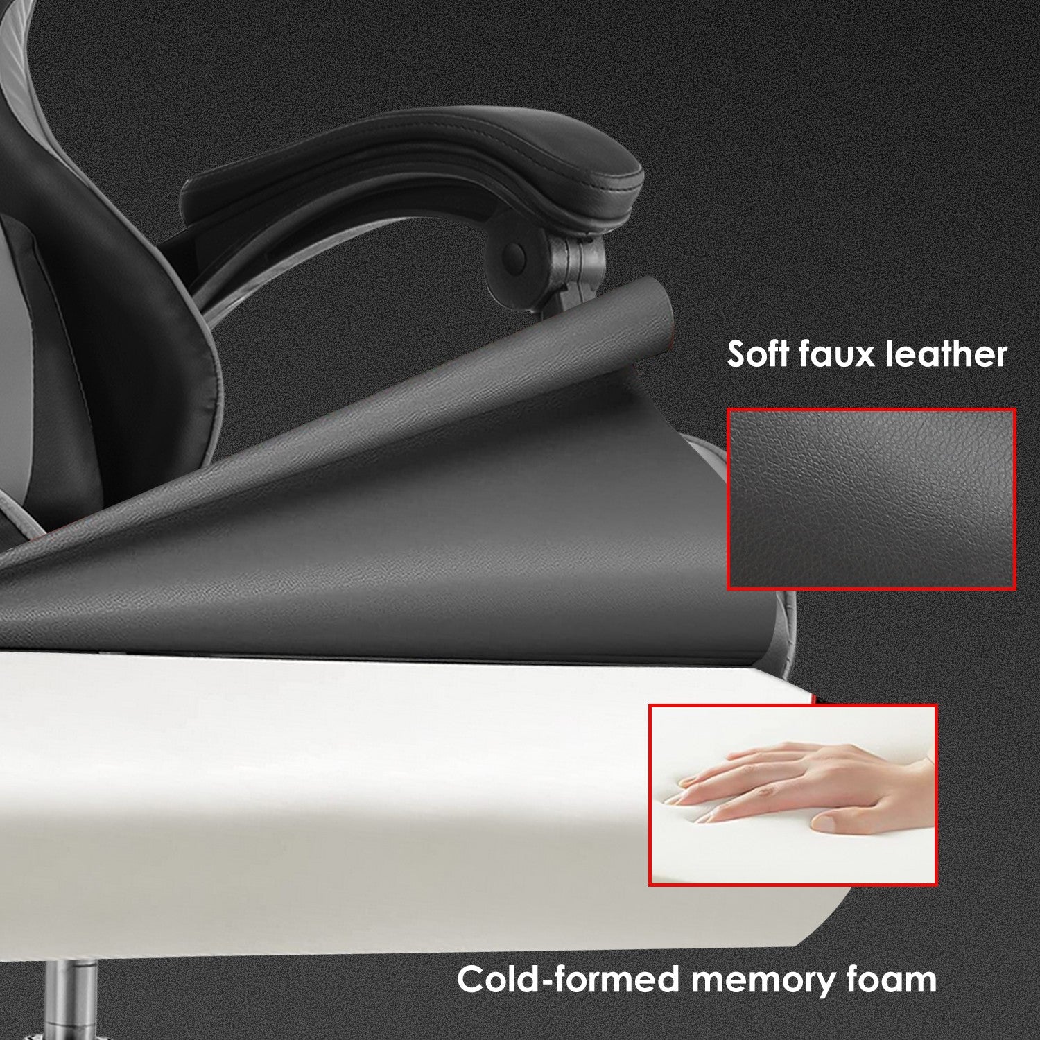 Massage Gaming Chair Leather Racing Office Executive Recliner with Leg Rest Grey