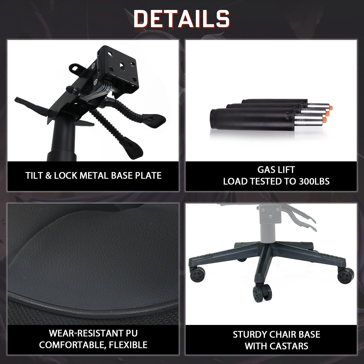 Armrests, Back Height, Back Rake Angle, Headrest, Seat Height, Seat Slide Angle, Seat Tilt, Tension Control