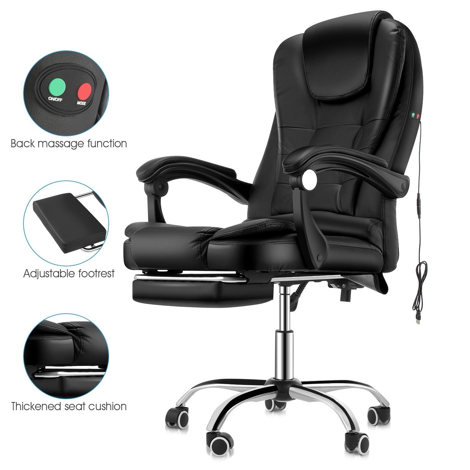 Massage Office Chair Gaming Computer Desk Swivel Recliner Chair Leather Footrest