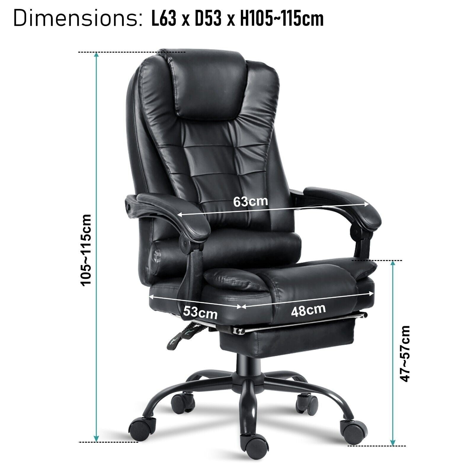 Features Recliner Office Chair, 8 Point Massage Chair, 2 Point Massage Chair, Casters/Wheels, Chair Gas Lift, Ergonomic, Fire Retardant, Heavy Duty, High Back, Lumbar Support, Padded Arms, Swivel, Tilt Control, Tilt Lock