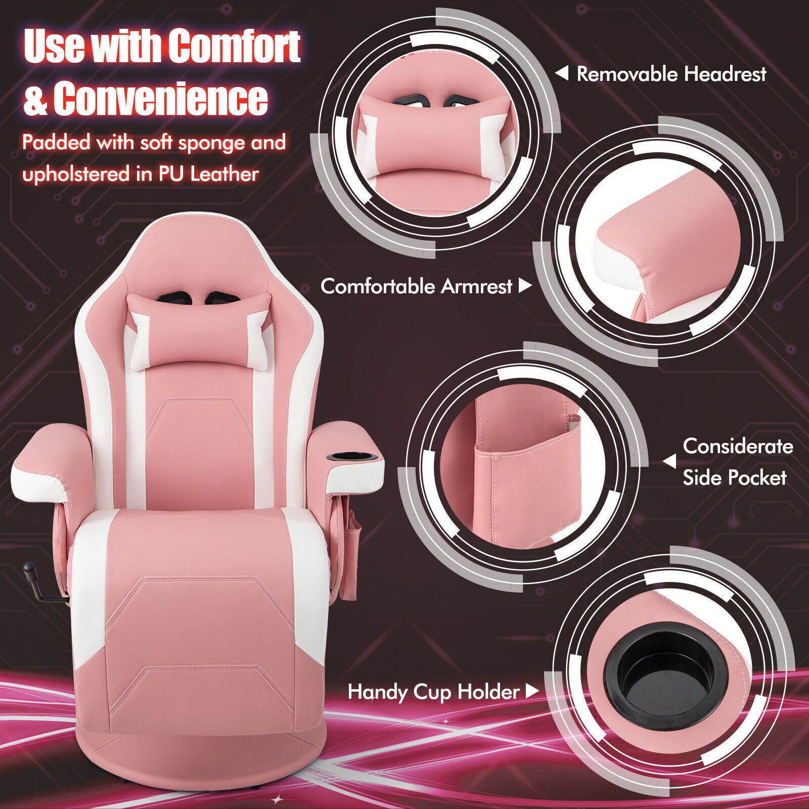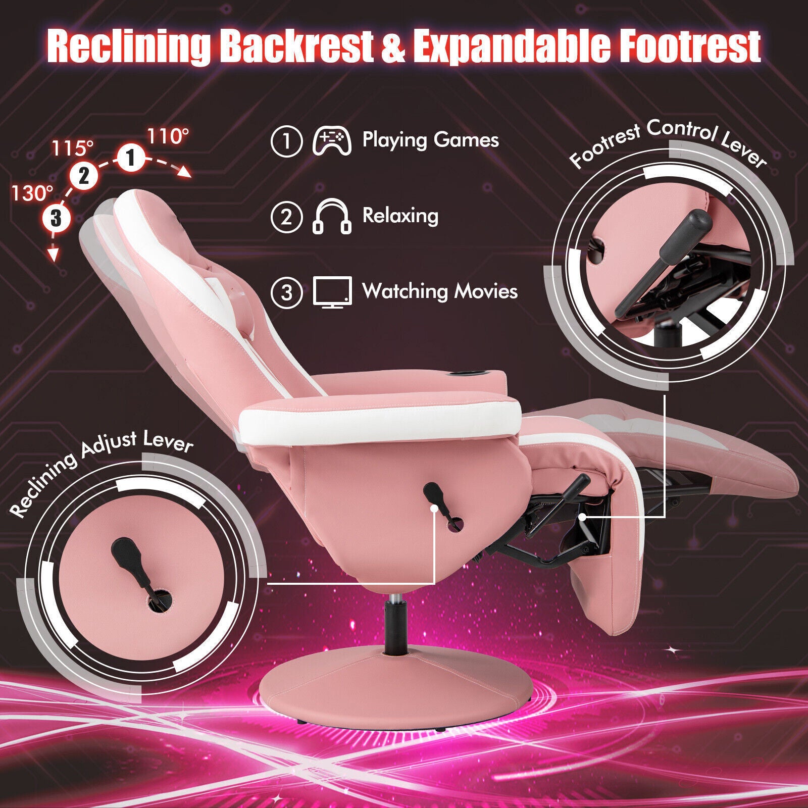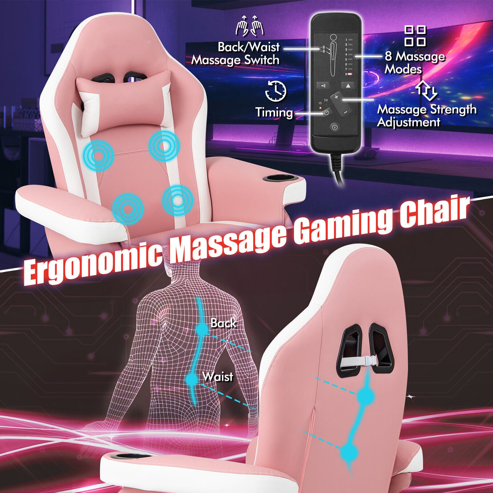 Massage Video Gaming Recliner Chair Ergonomic High Back Office Chair w/Footrest