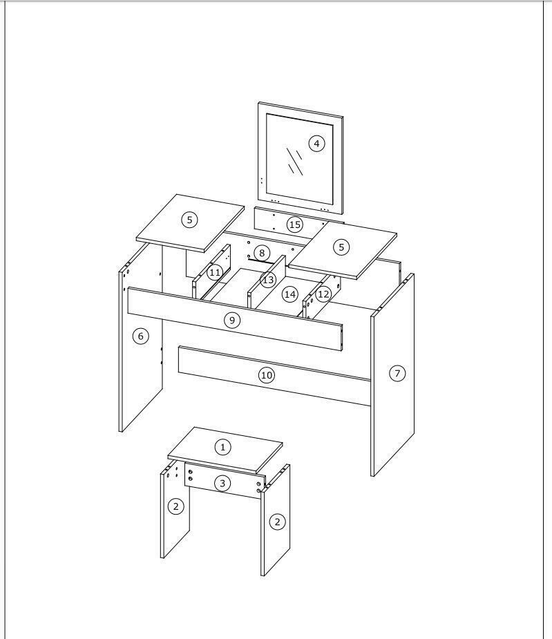 MDF Dressing Table Stool Set with Mirror Makeup Desk Dresser for Study Table