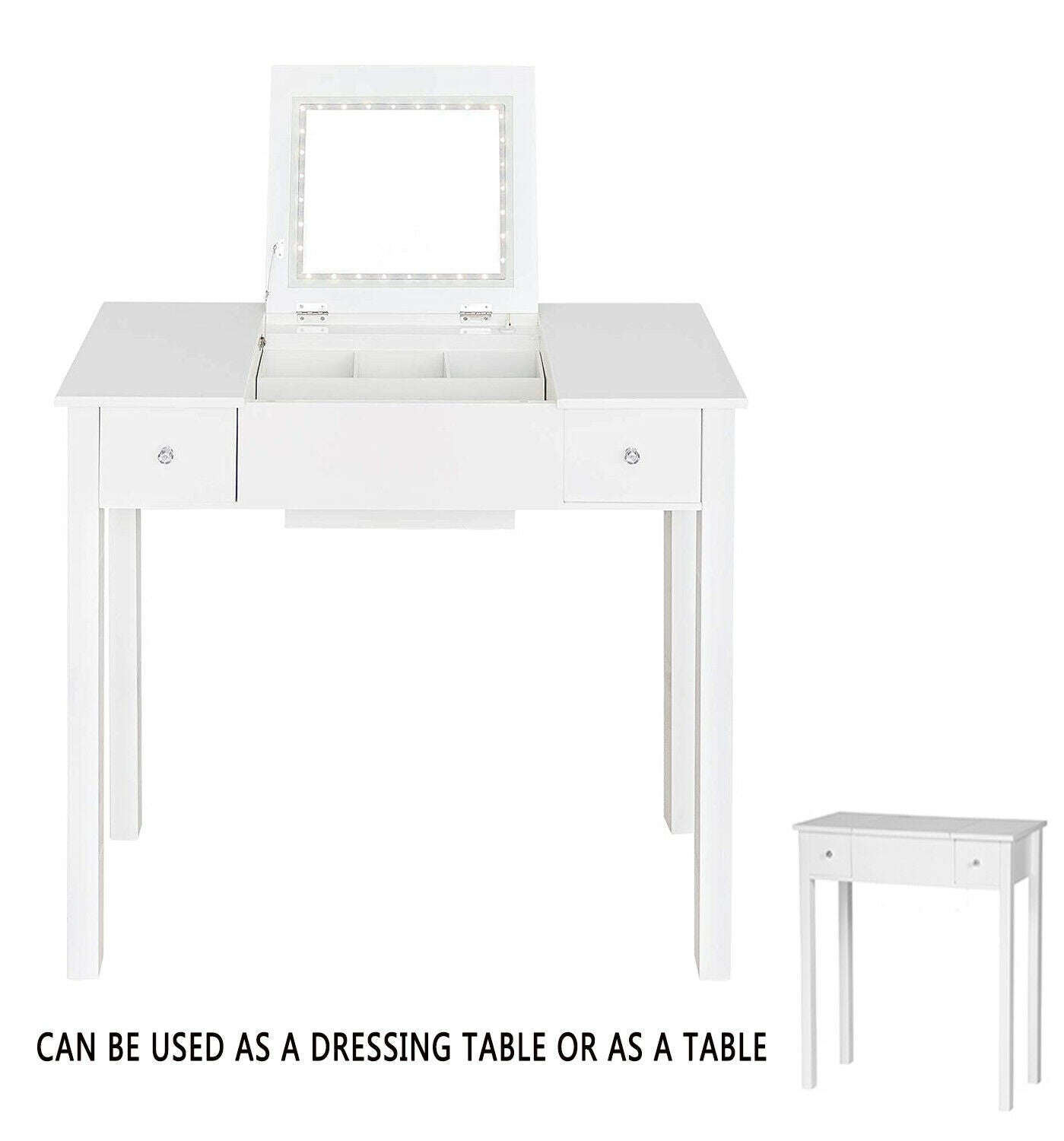 MDF Dressing Table with LED Beleuchtung Mirror 2 drawers Makeup Desk for table