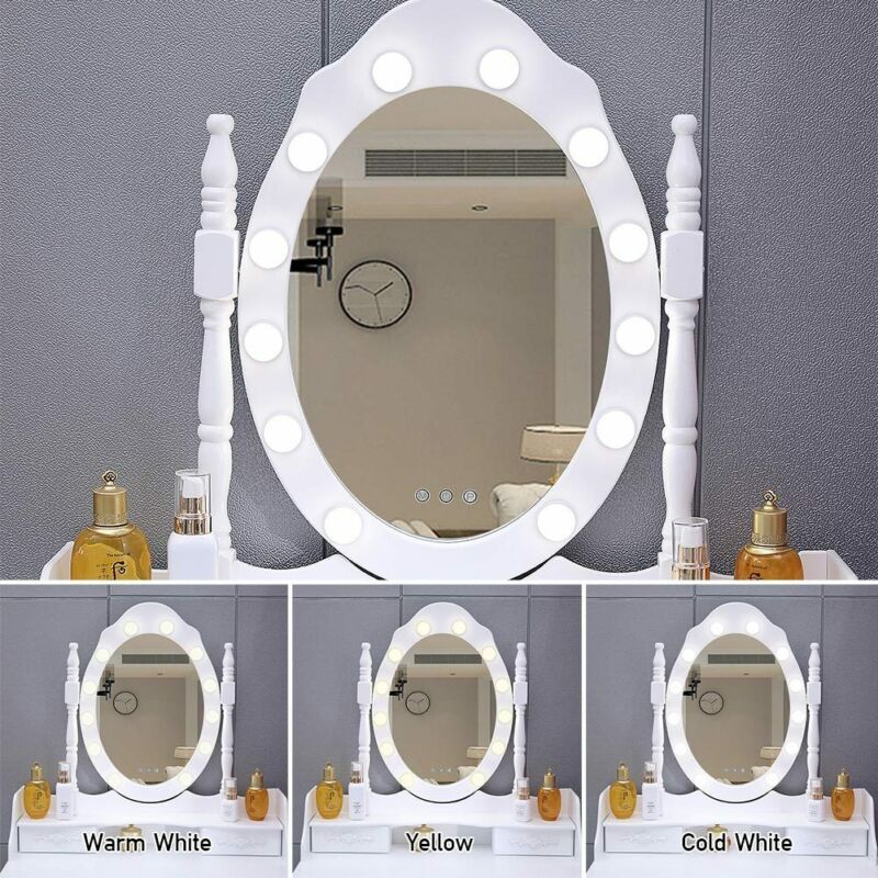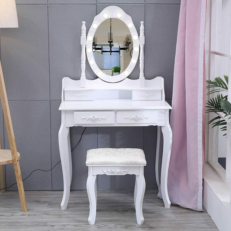 Medieval European Dressing Table with Hollywood LED Lights Mirror Makeup Cabinet