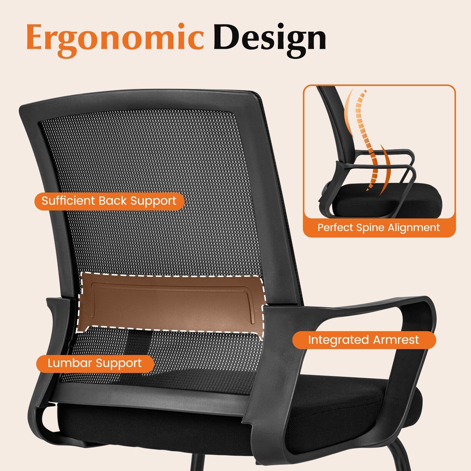 Meeting Office Chairs Mid-Back Mesh Reception Chair Guest Chair w Lumbar Support