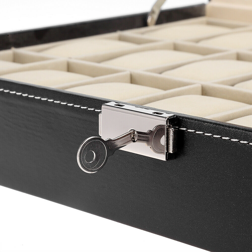 Mens 24 Grids Leather Watch Display Case Jewelry Collection Storage Holder Box
