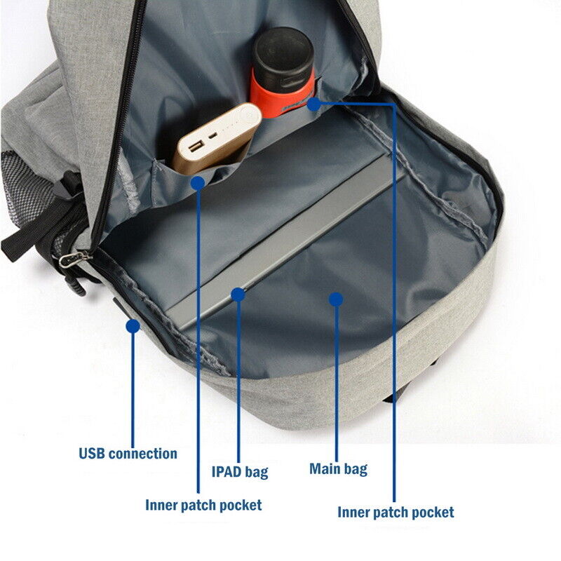 Mens Boys Girls School Large Backpack Travel Rucksack Shoulder Laptop Bag USB UK