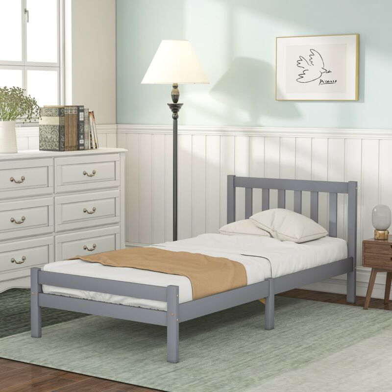 Merax Single Bed 3ft Solid Wooden Bed Frame Bedroom Furniture Adults/Kids 90x190
