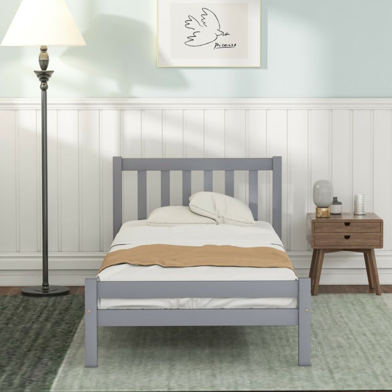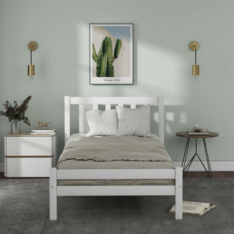 Merax Single Bed 3ft Solid Wooden Bed Frame Bedroom Furniture Adults/Kids 90x190