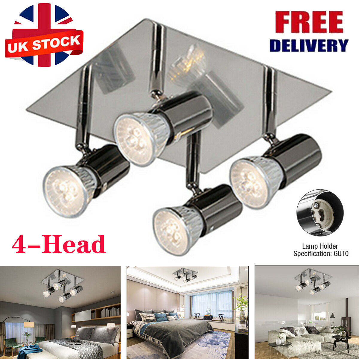 Metal 4 Way Adjustable LED Ceiling Light Spotlight Fitting Kitchen Bar Lighting