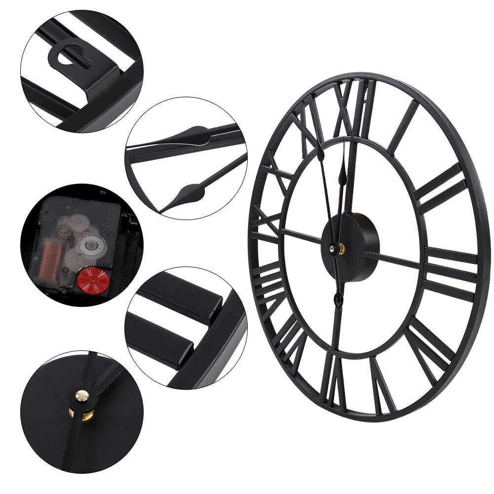 Metal 40CM 3D Wall Clock Round Antique Industrial Roman Numeral Home Cafe Decor