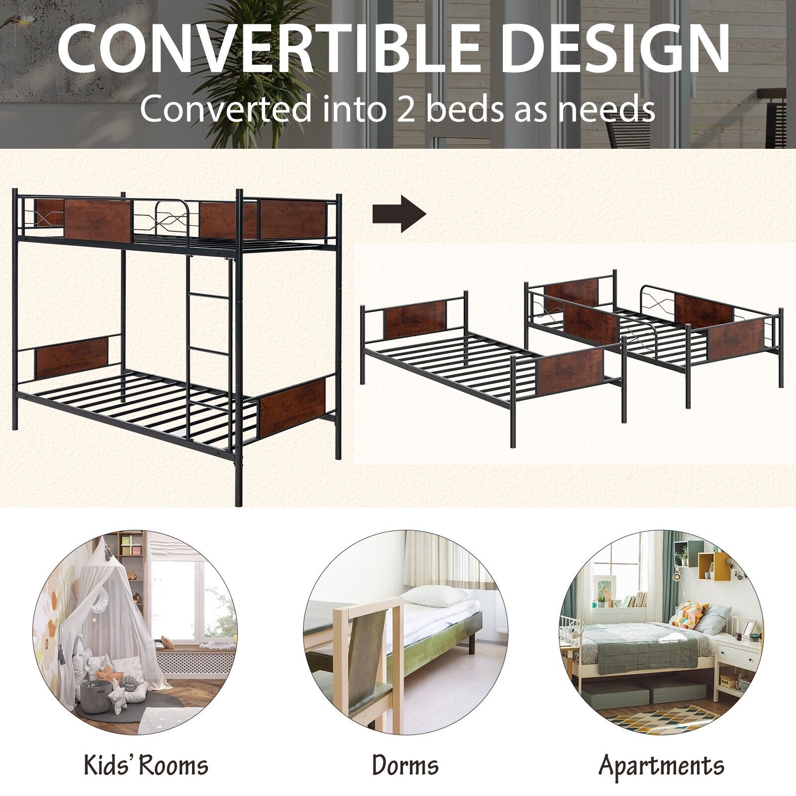 Metal Bunk Bed 3FT Single over Single Loft Bed Frame W/ Ladder Safety Guardrail