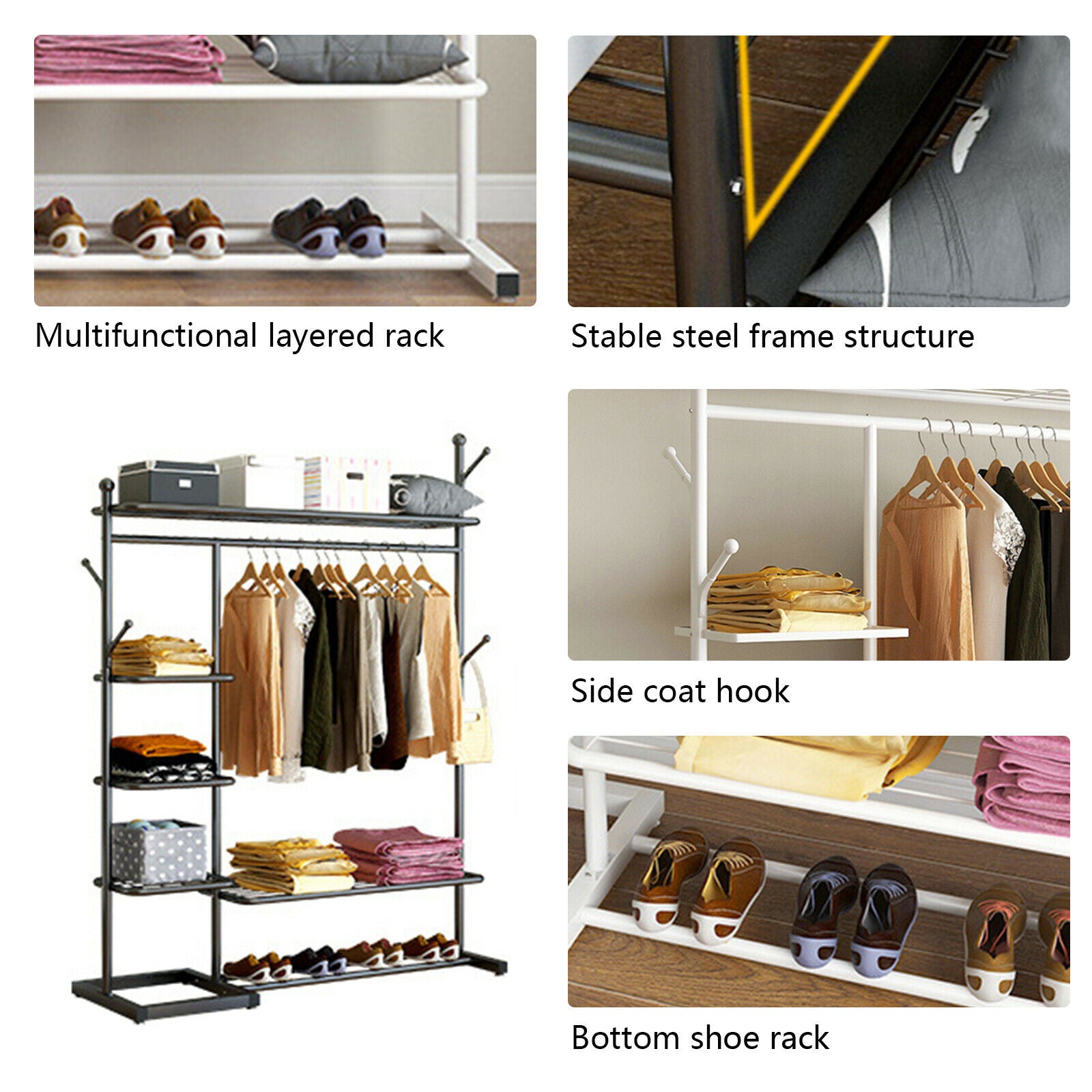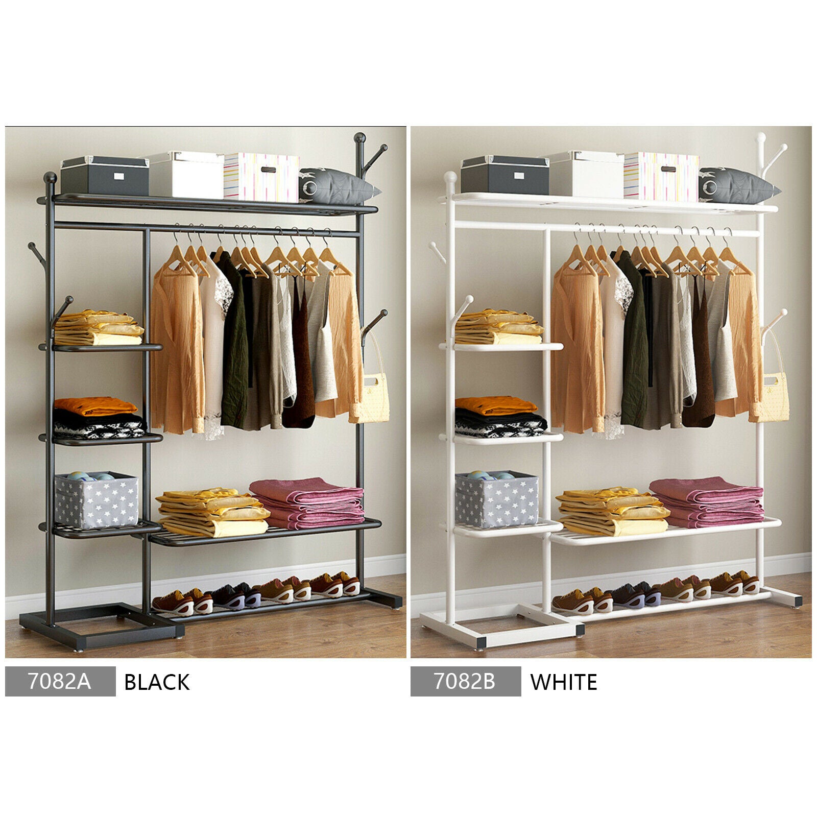Metal Clothes Rail Rack Hanging Garment Display Stand Shoe Storage Shelf Hook UK