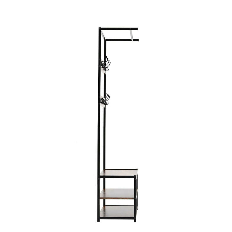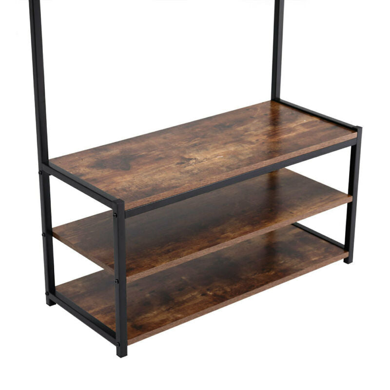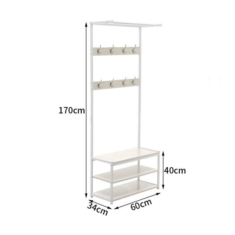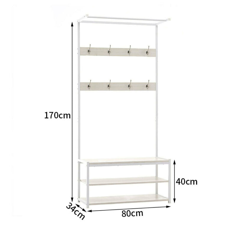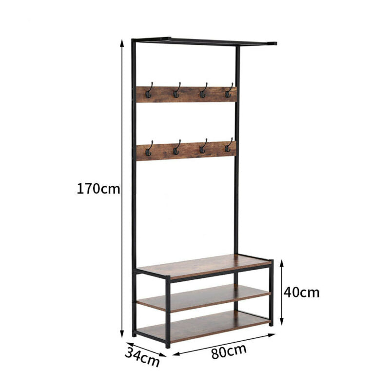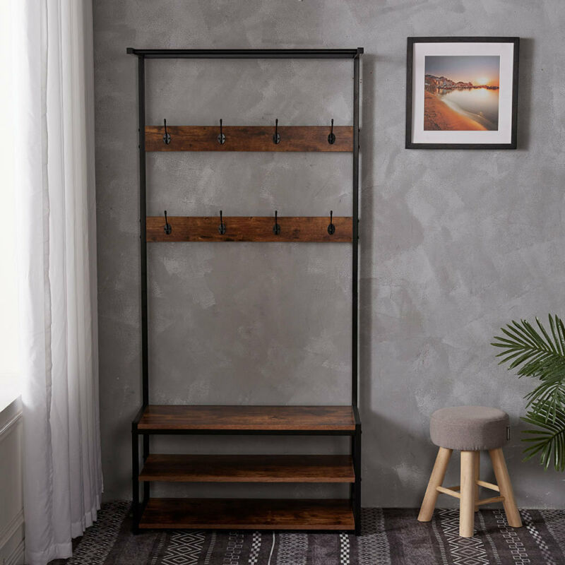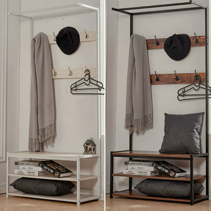 Metal Coat Hat Rack Standing Clothes Stand Rail 8 Hooks & 3 Tier Shoe Rack Bench