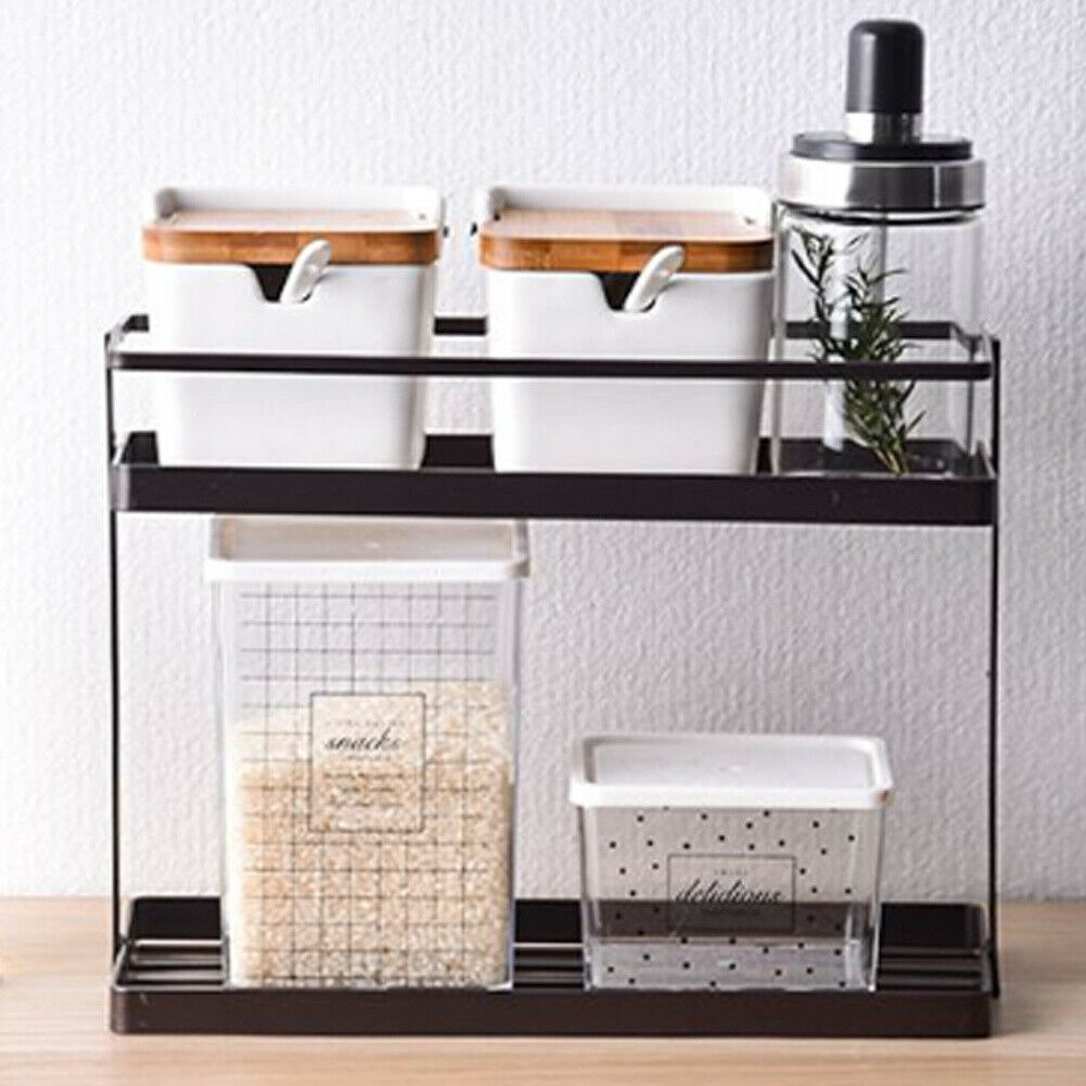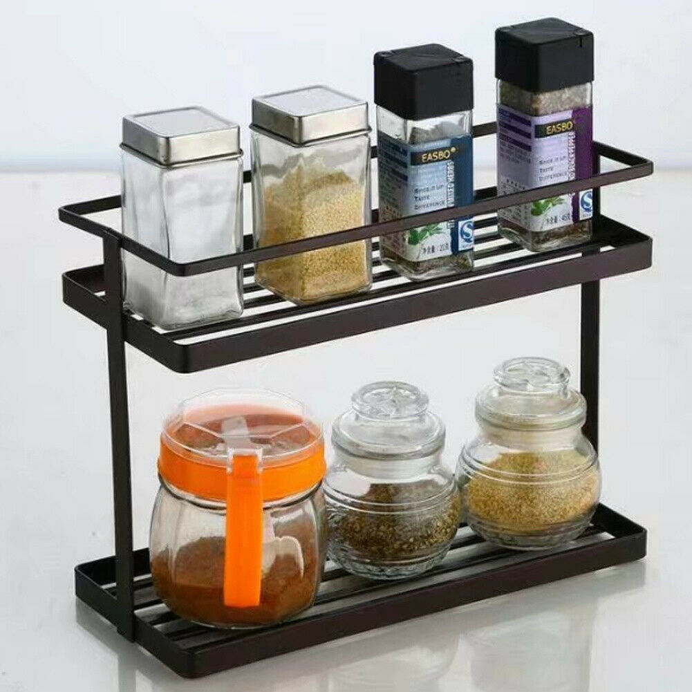 Metal Durable 2 Tie Spice Rack Stand Kitchen Jar Storage Shelf Corner Organiser