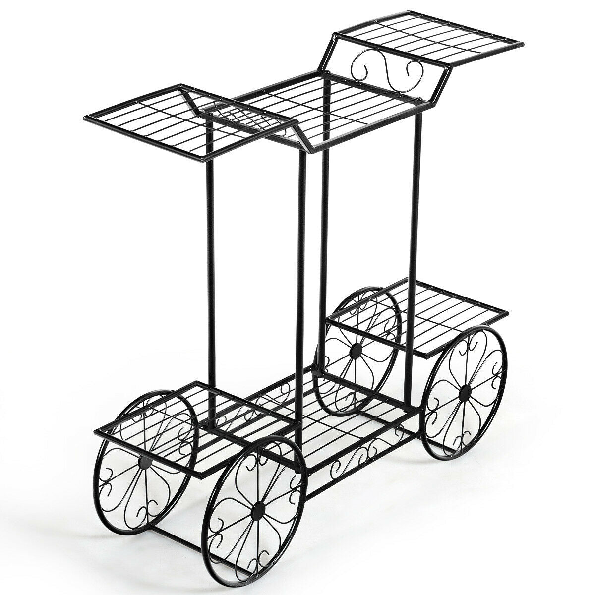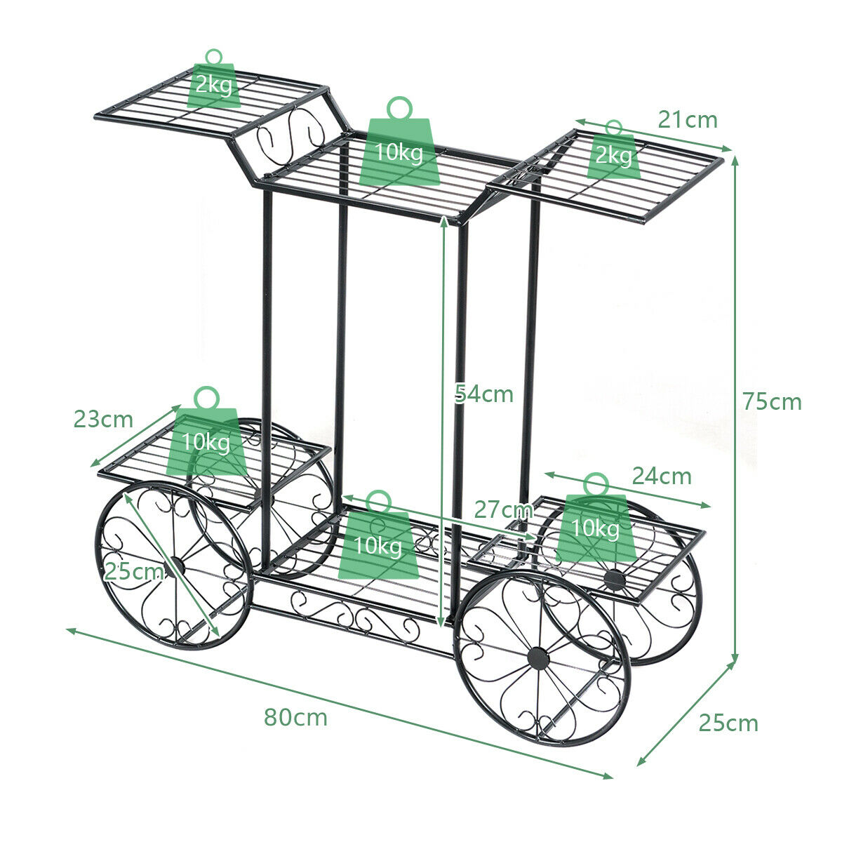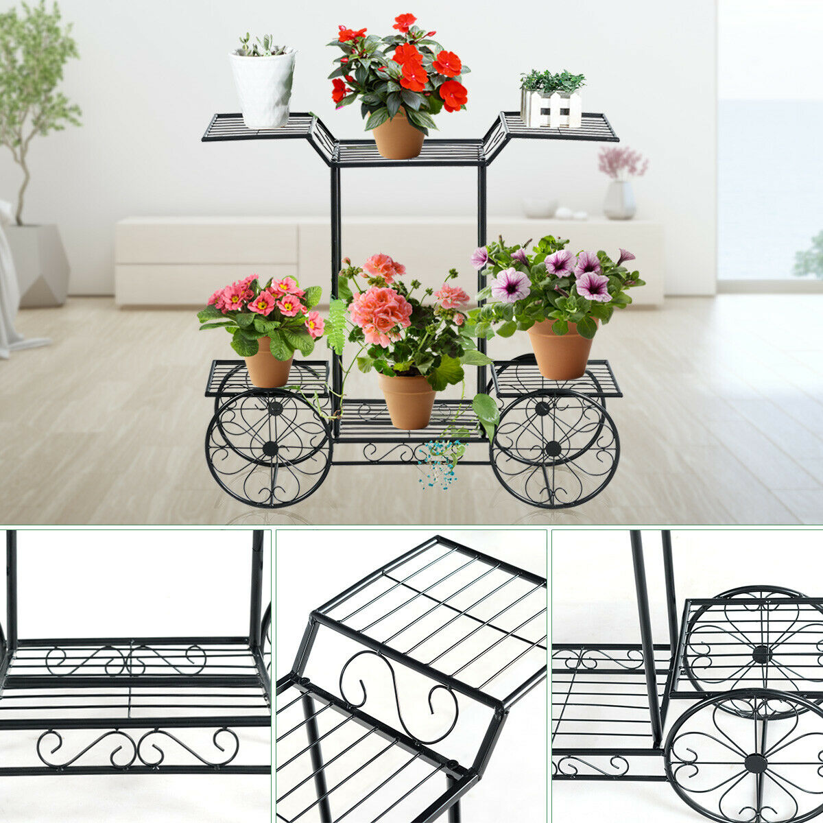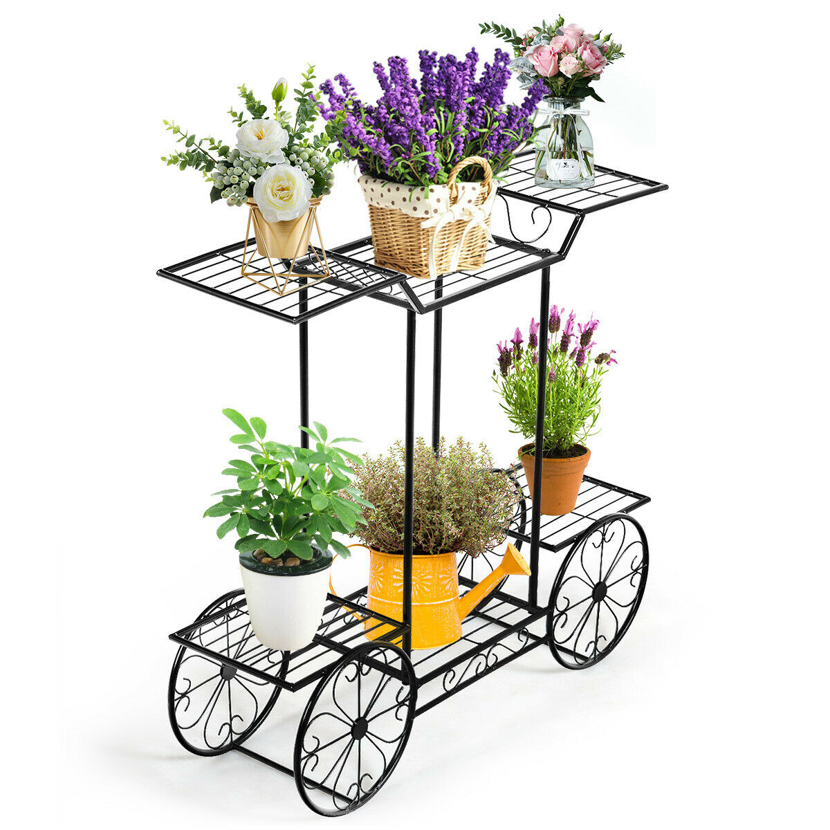 Metal Garden Cart Stand 6 Tier Flower Pot Plant Holder Home Patio Display Rack