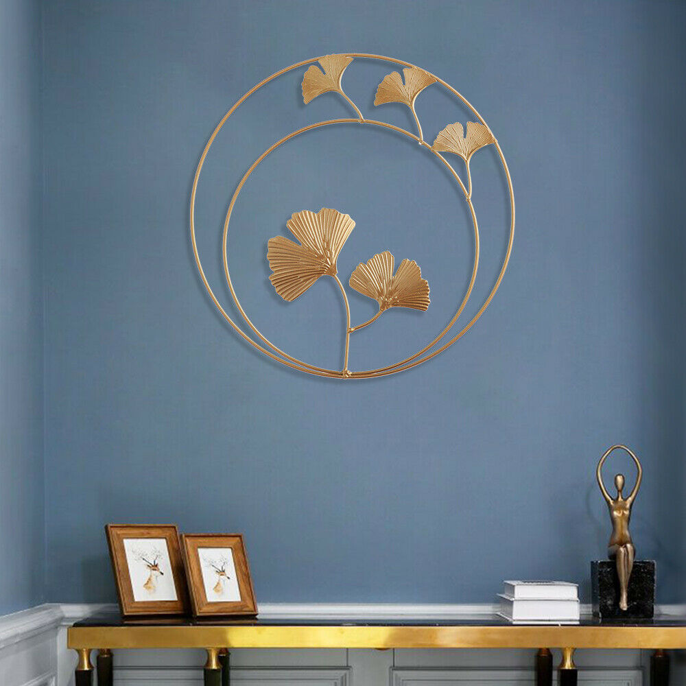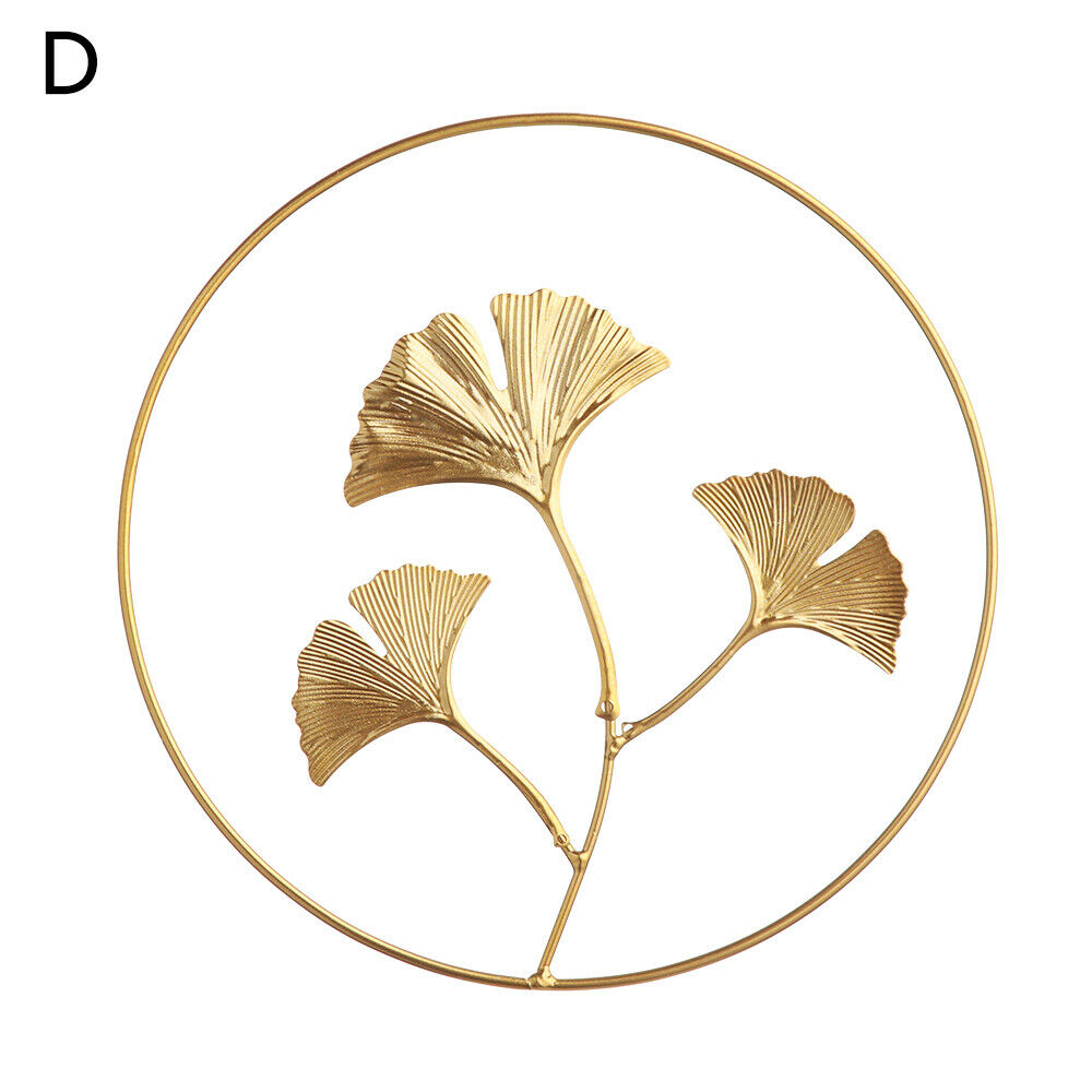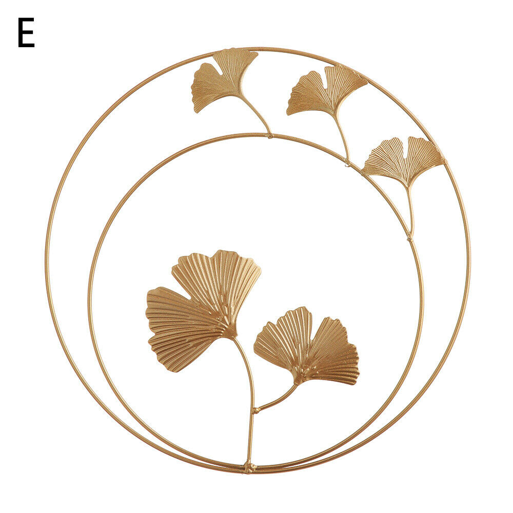 Metal Ginkgo Leaf Wrought Iron Hanging Ornament Gold Round Home Wall Decoration