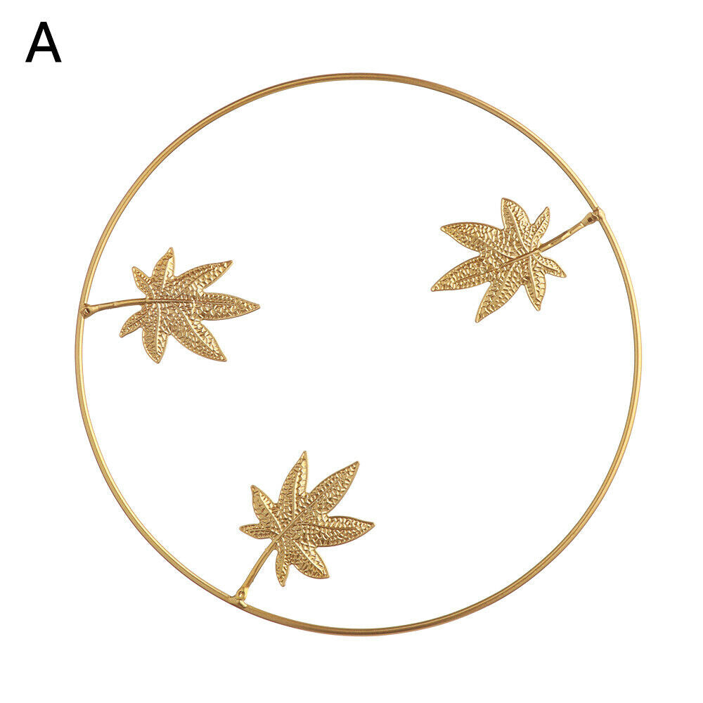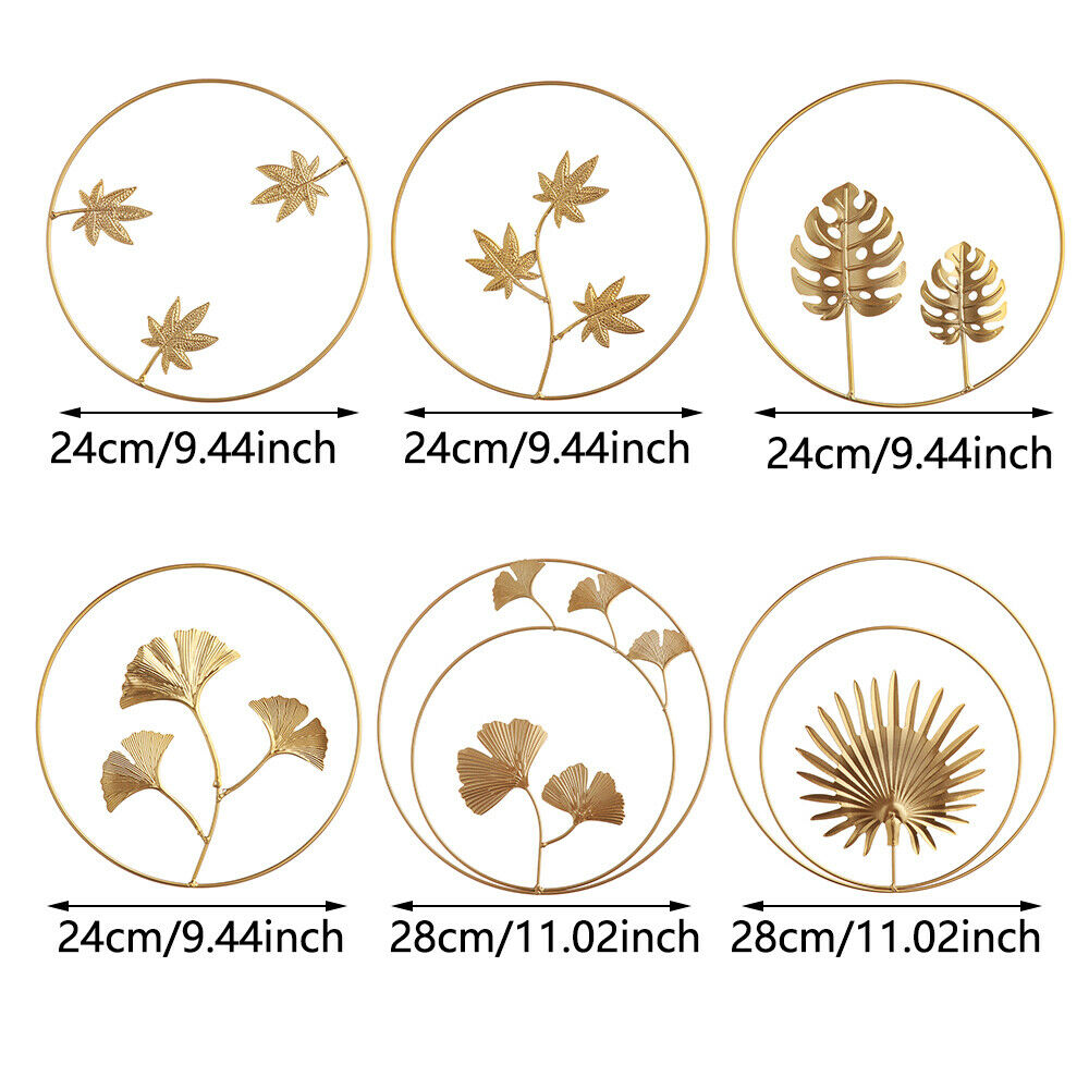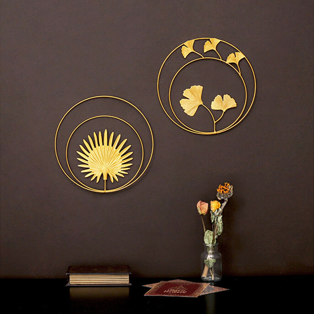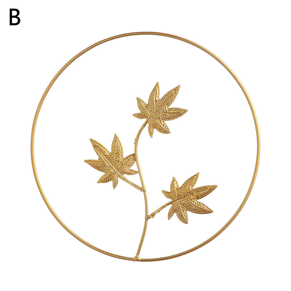 Metal Ginkgo Leaf Wrought Iron Hanging Ornament Gold Round Home Wall Decoration