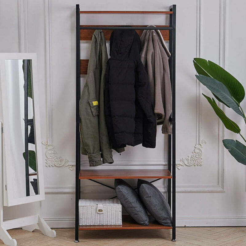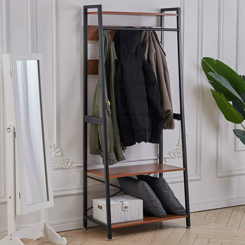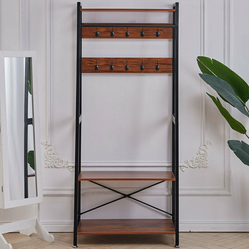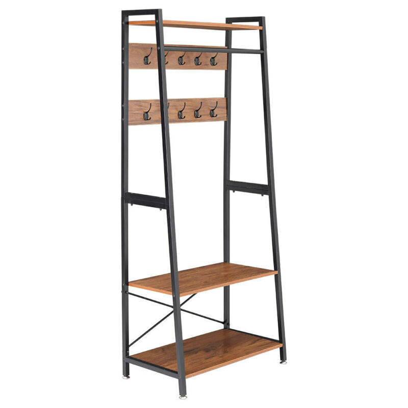 Metal Hat and Coat Stand Wooden Bench Clothes Shoe Rack Ladder Shelf 10 Hangers