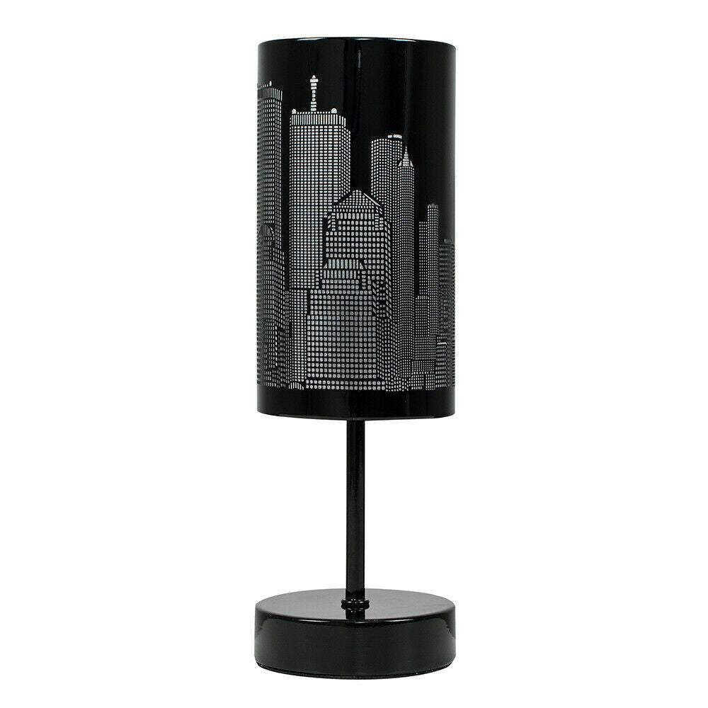 Metal LED Touch Table Lamp Modern New York Skyline Cut Out Design Gloss Black