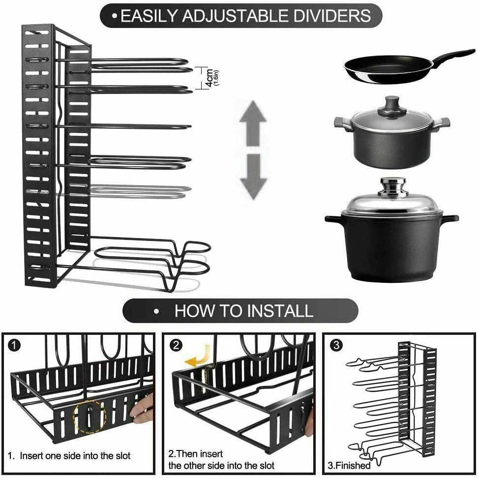 Metal Pan Pot Stand Holder Lids Rack Cupboard Kitchen Cabinet Storage Organiser