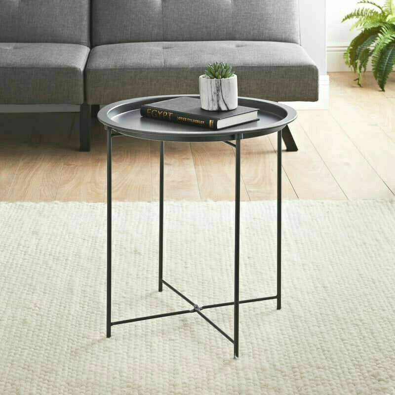 Metal Side Table Round End Sofa Table Detachable Tray Top Garden Terrace Balcony