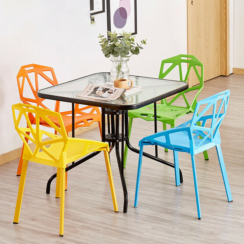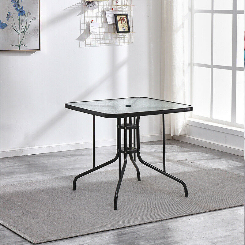Metal Square Bar Table Coffee Bistro Pub Counter Glass Top Leisure Home Décor UK