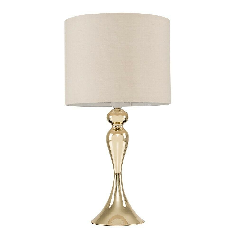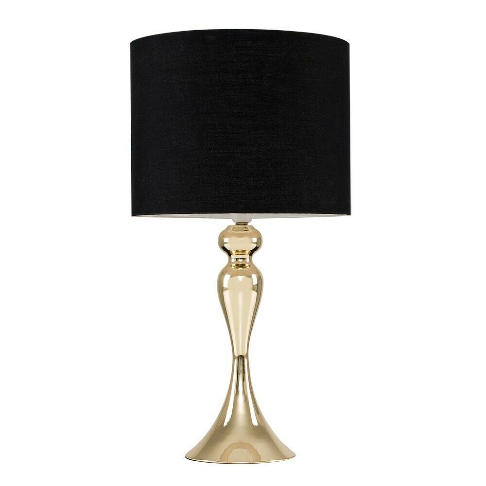 Metal Touch Table Lamp Spindle Base Fabric Drum Shades Gold Finish Living Room