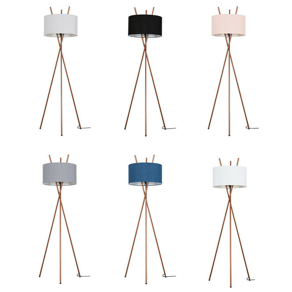 Metal Tripod Floor Lamp 190cm Tall Light Large Fabric Lampshades Home Lighting