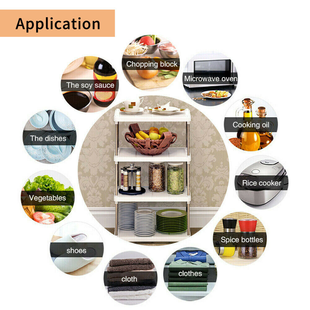 Metal Tube Storage Rack/Shelving Unit Book Shelf Kitchen/Office Unit Stand 4 Tie
